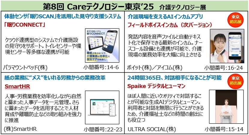 介護現場では、負担軽減やより質の高い介護の実現など、多岐にわたる課題を最新のテクノロジーを駆使して解決しようとする動きが活発化している。本展には、介護事業所向けのシステム、⾒守り、ロボットなどの介護テックが一堂に集まり、新たなソリューションを提案する。