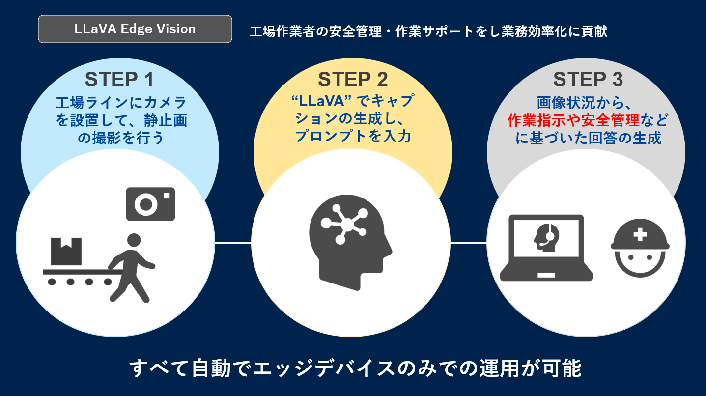 併せて、NVIDIA国内一次代理店である菱洋エレクトロ株式会社(本社:東京都中央区、代表取締役社長執行役員:中村 守孝、以下「菱洋エレクトロ」)の協力を得て、「第8回 AI・人工知能 EXPO春」においてシーメンス、NVIDIAと共同で「LLaVA Edge Vision」をご紹介いたします。