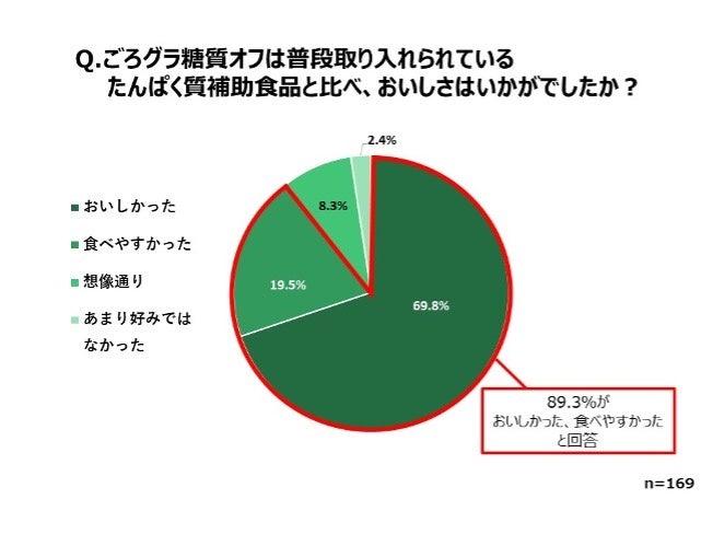 89%が他のたんぱく質補助食品と比べ「おいしかった」「食べやすかった」と回答