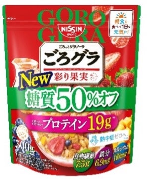 味のシリアル生地に3種のナッツ(アーモンド、カシューナッツ、くるみ)がたっぷり入った、豊かな味わいを楽しめます。「糖質 50%オフ 彩り果実」は、2 種類のメープルシロップで味付けした芳醇なメープル味のシリアル生地に、大きめスライスいちご、粒いちご、ブルーベリーボール、マンゴーがたっぷり。どれも、「ごろグラ」らしいリッチな味わいをお楽しみいただけます。