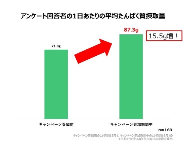 ペーン参加前と比べ、1 日あたりの平均たんぱく質摂取量が 15.5g 増加!