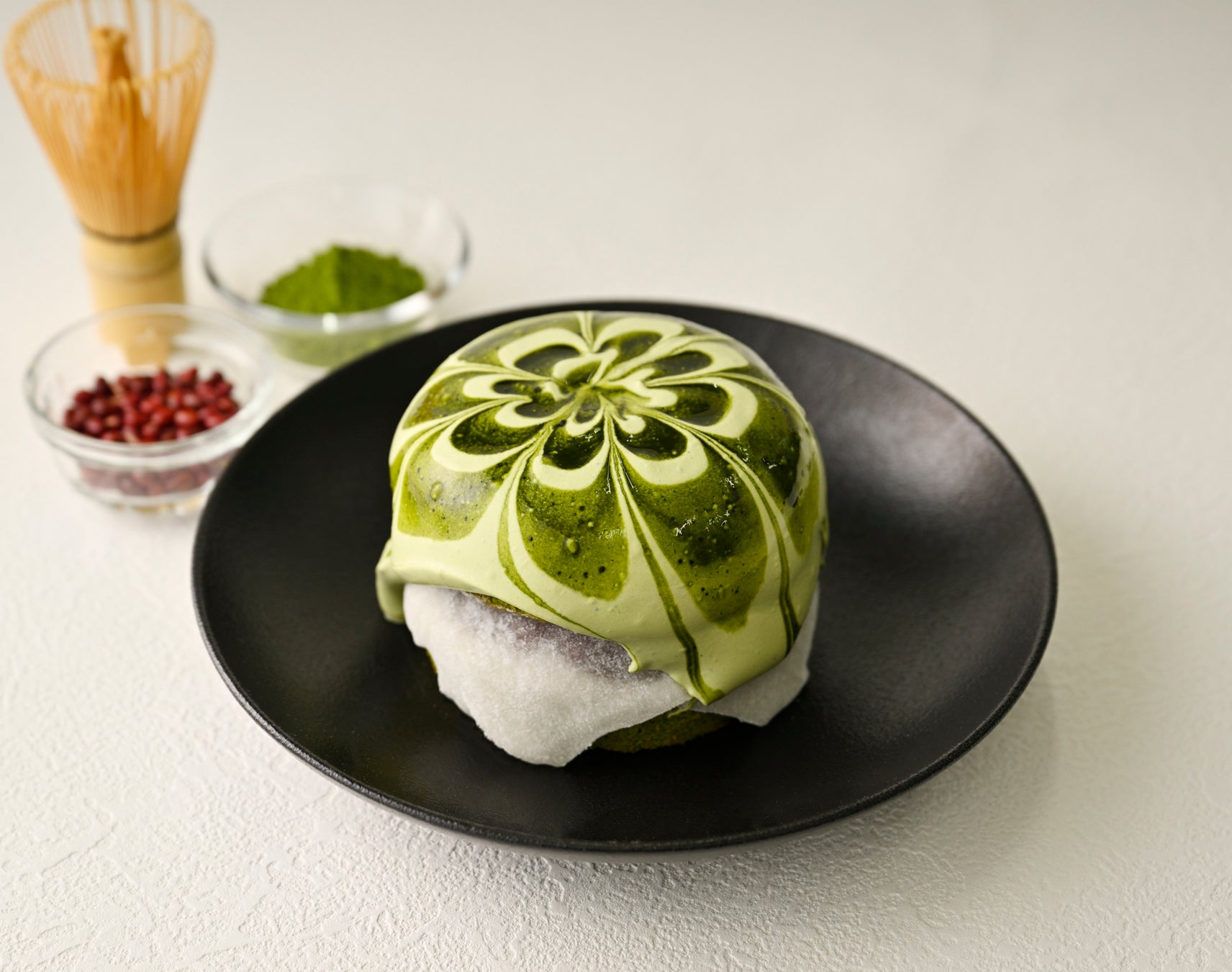 抹茶の風味を今まで以上に感じていただけるよう、今回初めて宇治抹茶を混ぜ込んだふわふわの生地を開発し、もちもち食感の求肥と一緒に召し上がっていただく、満足感のあるスイーツです。