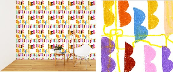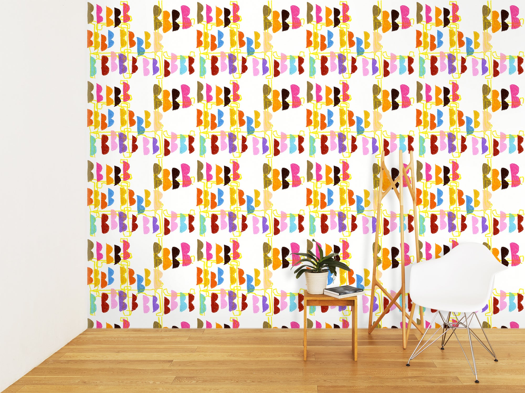 心躍るような色、愛らしい形と黄色い線の連続が壁一面に広がると