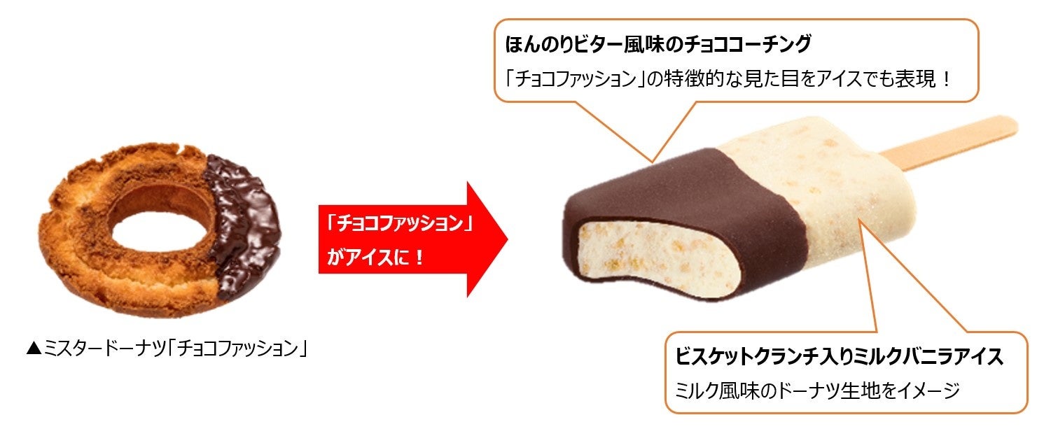 森永製菓株式会社(東京都港区芝、代表取締役社長・太田 栄二郎)は、株式会社ダスキン(本社:大阪府吹田市、代表取締役社長・大久保 裕行)が運営するドーナツ店『ミスタードーナツ』の定番人気ドーナツ「チョコファッション」をイメージした「ミスタードーナツ アイスバー」を、全国のコンビニエンスストア限定で2月20日(月)より新発売いたします。