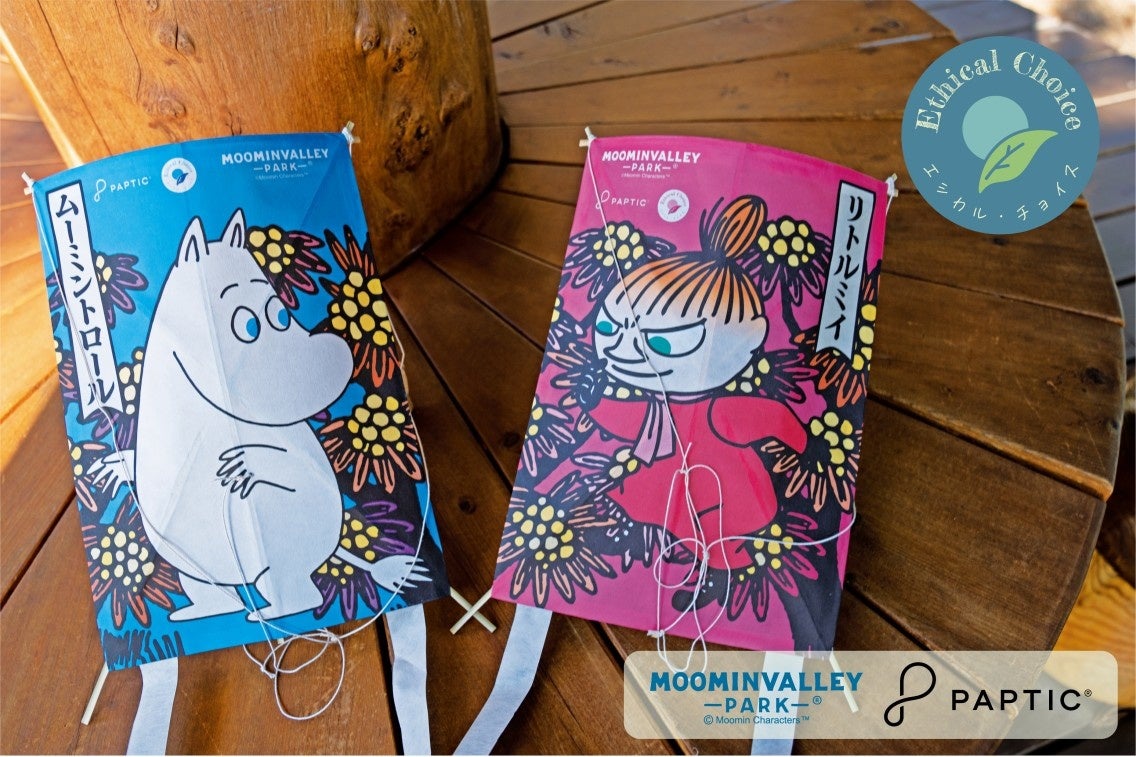 和凧の素材には、しなやかで優しい触感が特徴の、自然との共生を掲げるフィンランド・Paptic社の素材「PAPTIC / パプティック」を採用。デザインは、ムーミンバレーパークのロゴにも登場するムーミントロールとリトルミイの2種類を日本の伝統的な配色で表現しました。