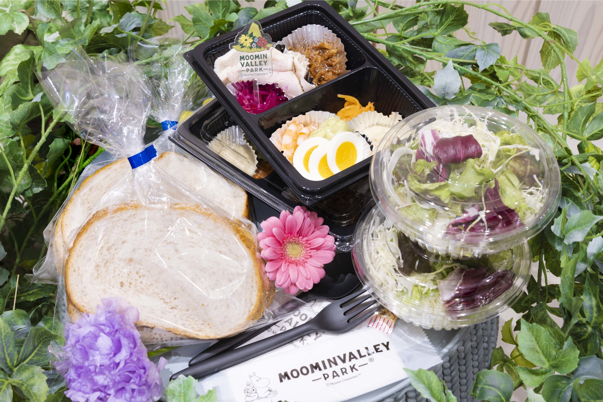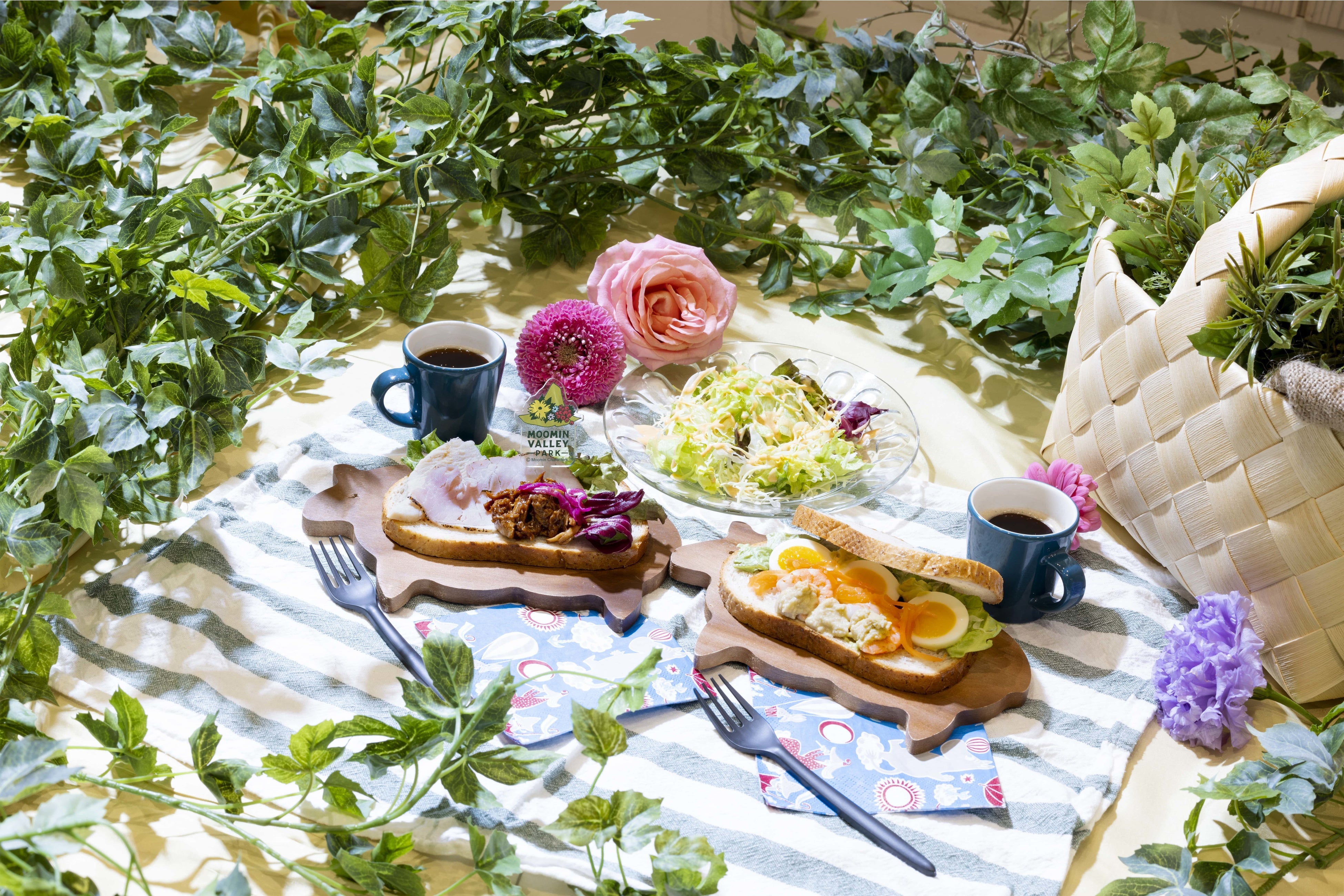 パンとサンドイッチの具材がセットになったテイクアウト型のピクニックセットは、お好みで具材を挟んでサンドイッチにしたり、上に乗せてスモーブロー(オープンサンドイッチ)にしたり、組み合わせは自由自在。春限定のメニューを2名様分セットでご用意しました。物語の世界観を感じるムーミン谷エリアや自然豊かなおさびし山エリアなど、開放感あふれる場所で、大切な人と春のピクニックをお楽しみください。