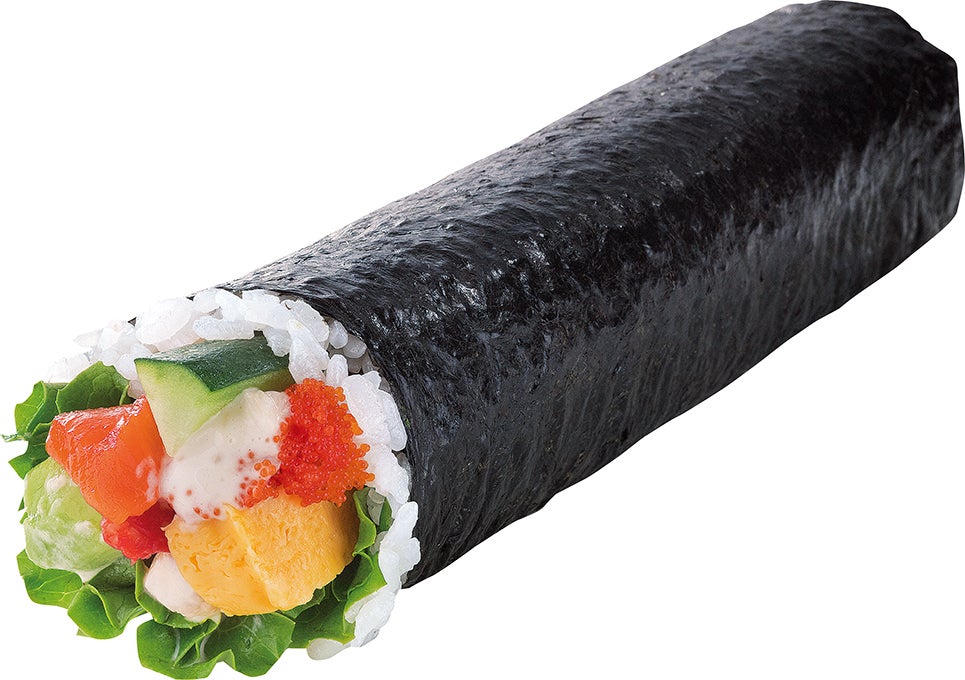 具材:サーモン、アボカド、エビマヨ、玉子、かにかま、きゅうり、