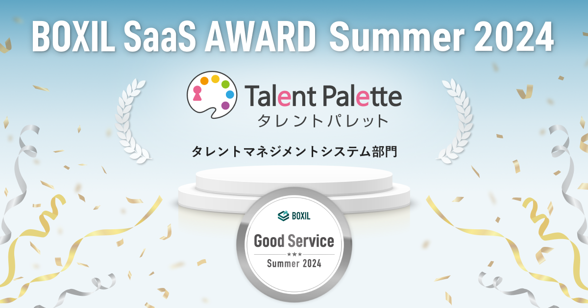 タレントパレットが「BOXIL SaaS AWARD Summer 2024」のタレントマネジメントシステム部門にて口コミの総得点が高い「Good Service」を8期連続で受賞