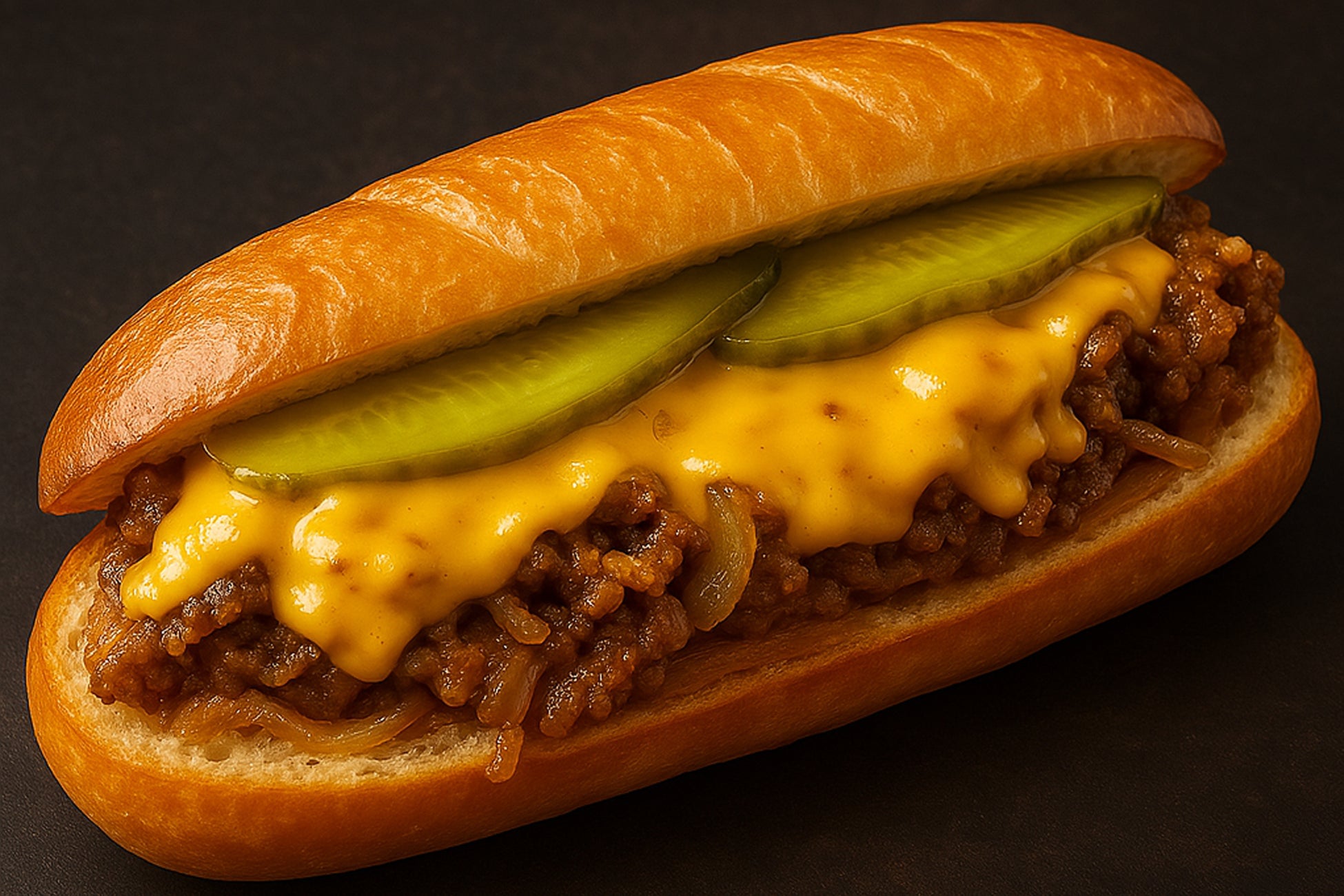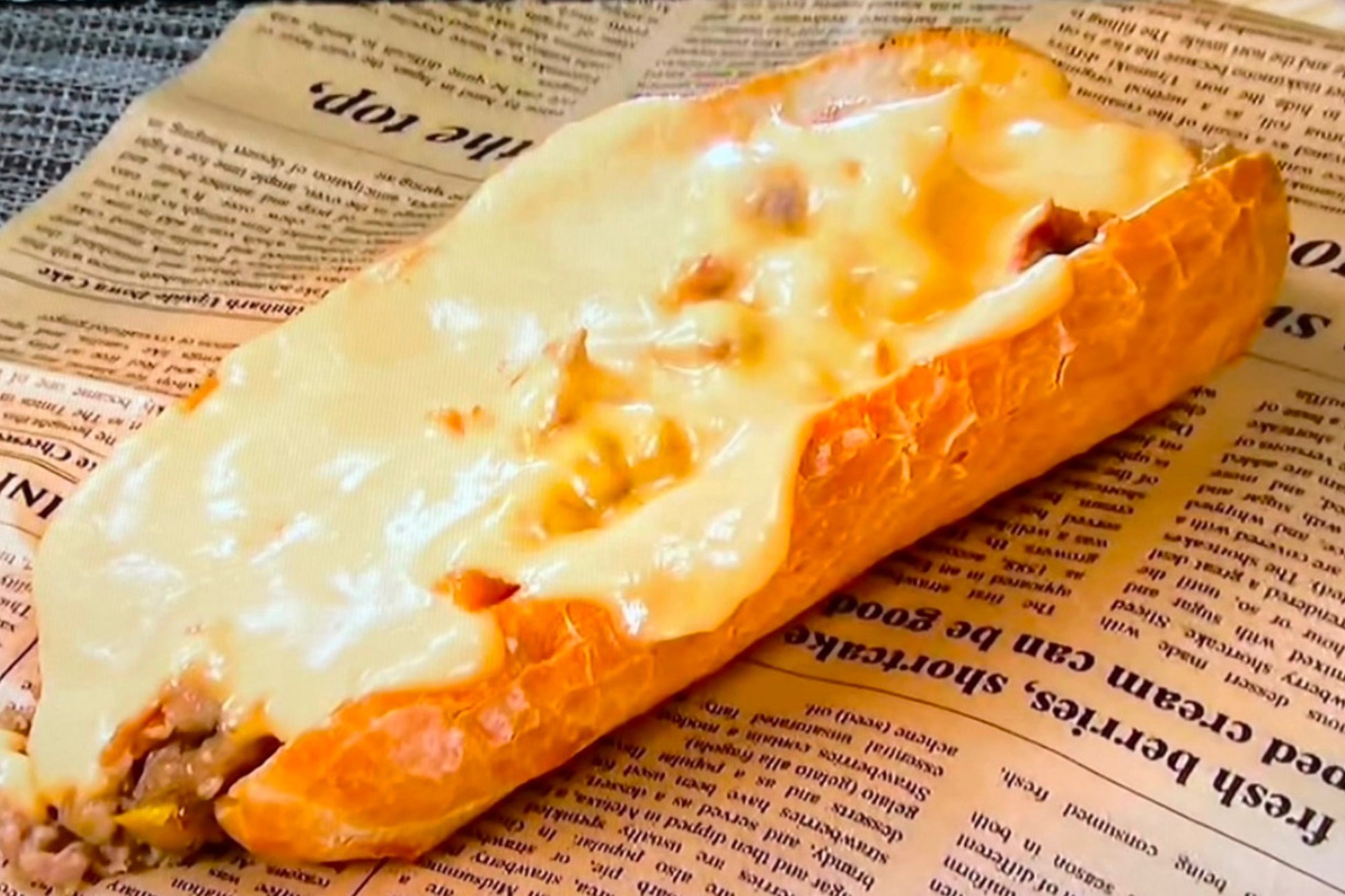フィラデルフィアのソウルフード「フィリーズステーキサンド」。ジューシーな牛肉のステーキに熱々のチーズをかけたクラフトサンドイッチです。