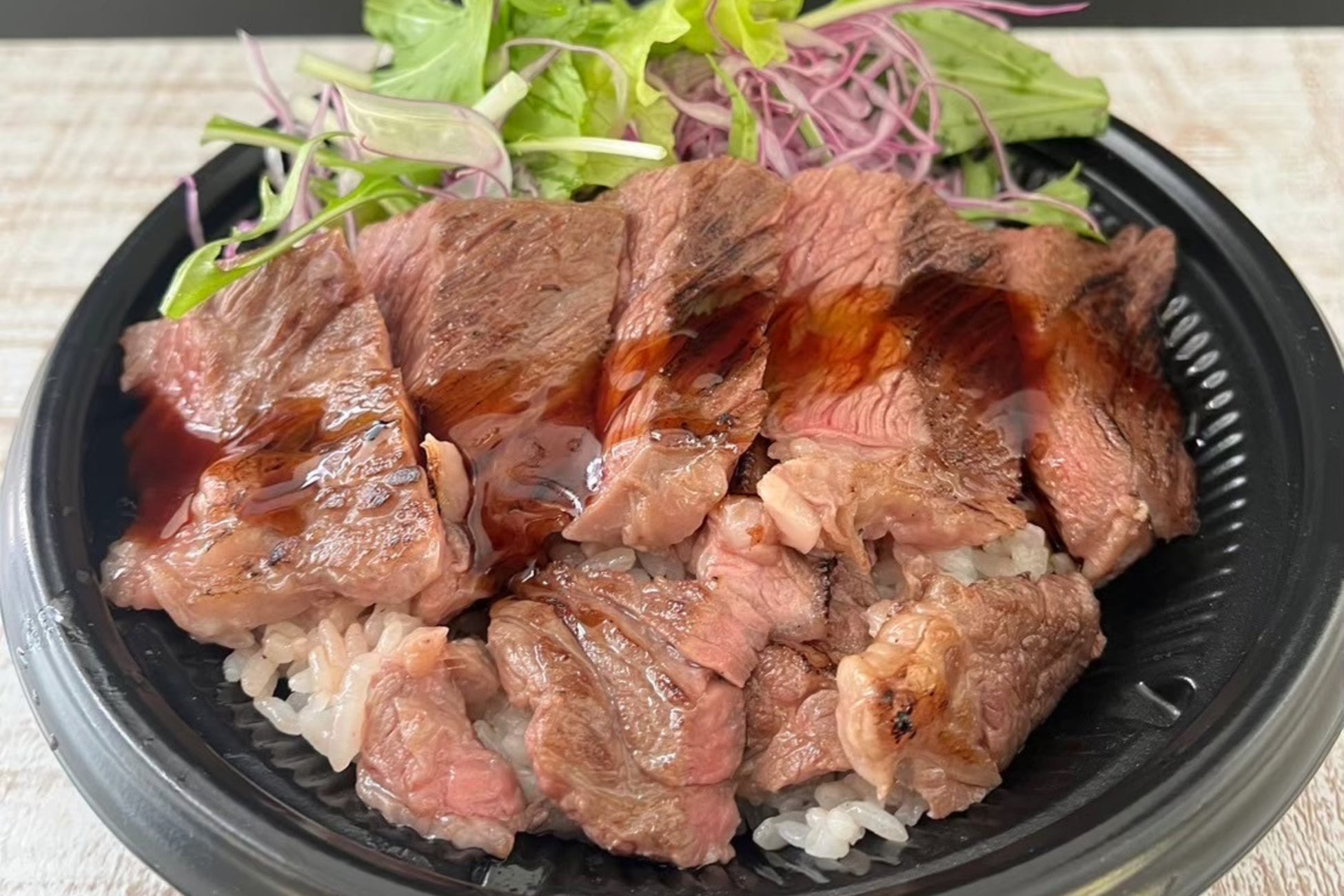 厳選したアメリカ産牛肩ロースの肉を使用し、炭の香りと特製ダレで仕上げた牛ステーキ丼は、一度食べたらクセになる味付け!品質の高い食材を、お客様に満足していただけるよう一つ一つ丁寧に調理します。