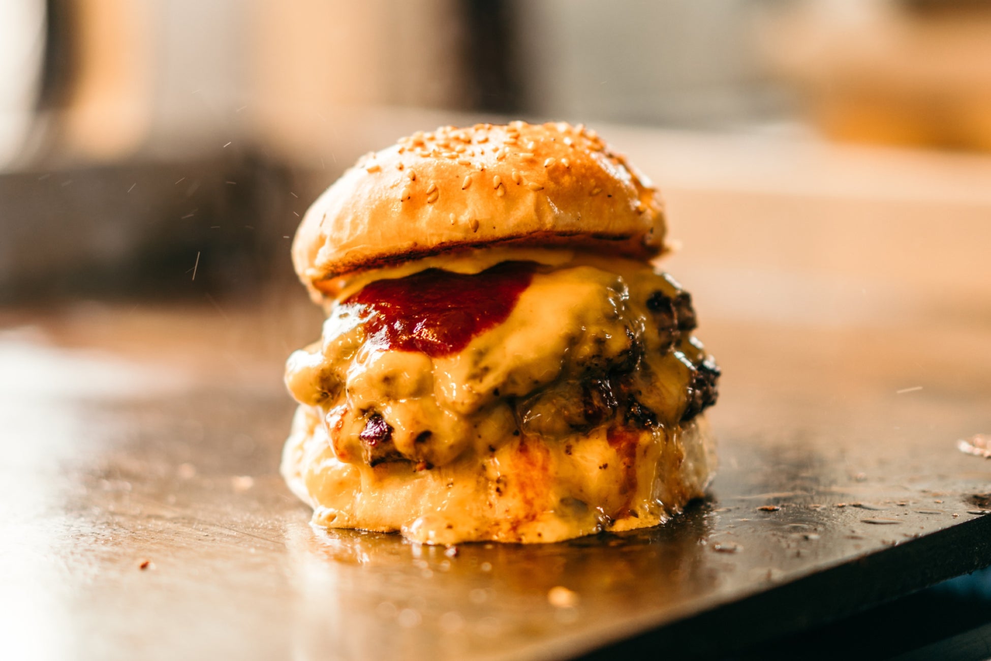 HAMBURGER専門のキッチンカー。BEEF100% 極粗挽肉を使用したオリジナル配合の自家製パティと国産小麦を使用したバンズが特徴。パティ2枚&チェダーチーズ4枚の食べ応えたっぷりのダブルチーズバーガーです!