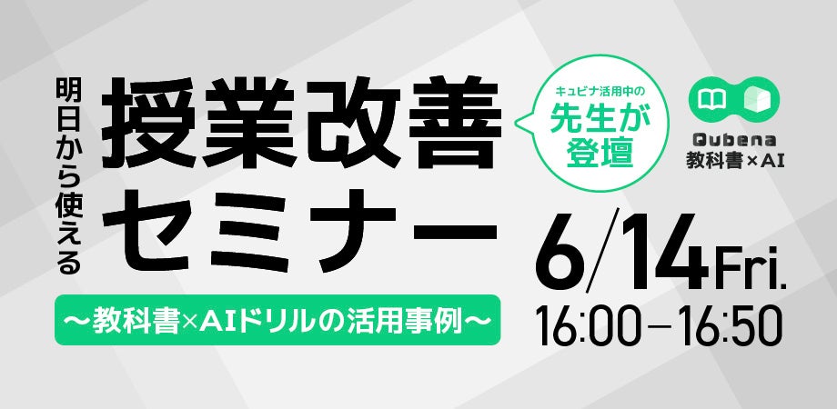 こうした教科書とAIドリルの連動により、日々の学習シーンはどのように変化しているのか、日々「授業改善」のテーマに向き合われている全国の学校教育現場の皆さまとの情報共有の場として、オンラインセミナー「明日から使える授業改善セミナー ~教科書×AIドリルの活用事例~」を開催いたします。本セミナーではキュビナを導入・活用いただいている東京都足立区・埼玉県新座市の小中学校より5名の先生をゲストにお迎えし、キュビナの教科書対応機能・コンテンツを活用した授業改善の実践事例についてご紹介、またトークセッション形式で意見を交わしていただきます。ぜひふるってお申し込みください。