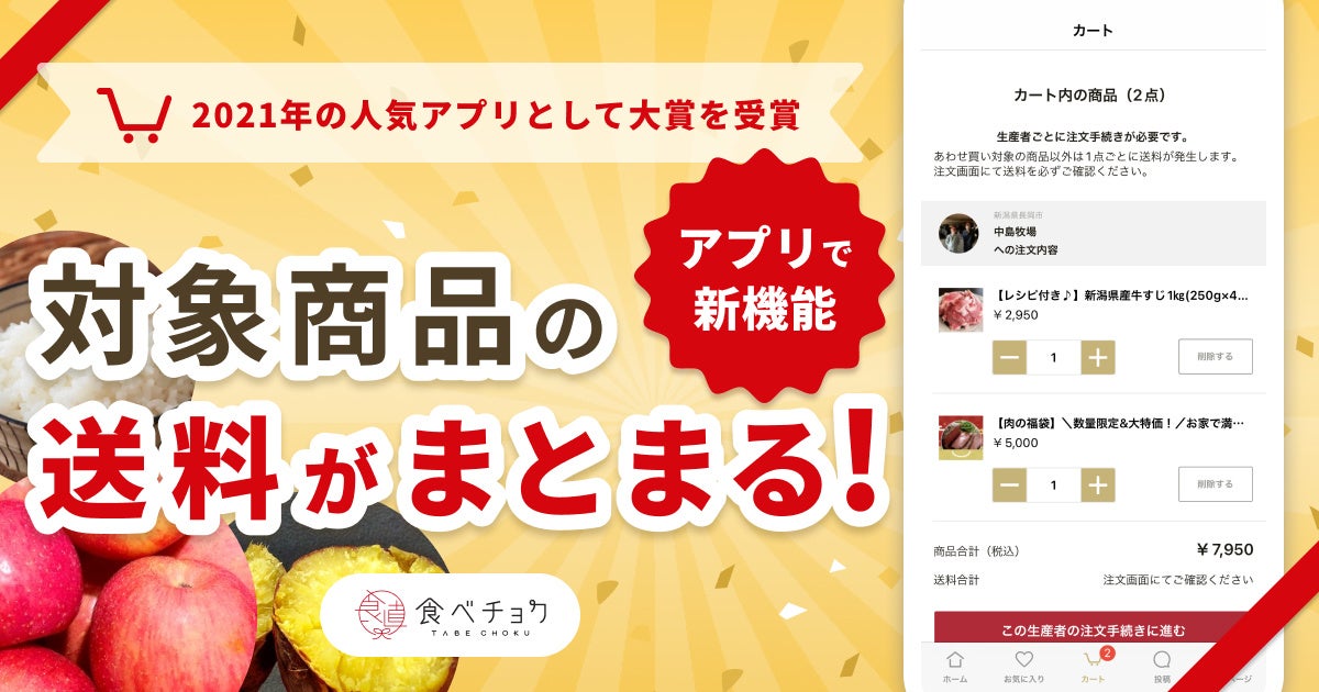 食べチョクがアプリで同一生産者の商品の送料がまとまる「あわせ買い」機能をリリース。