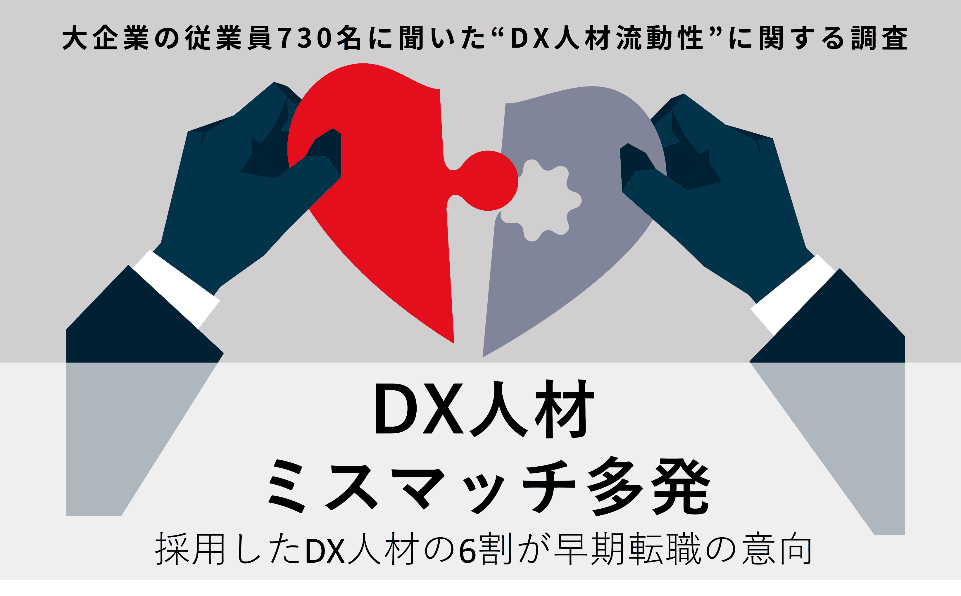 【大企業の従業員730名に聞いた「DX人材の流動性」に関する調査】8割以上がDX人材を社外から採用する一方で、約4割がミスマッチを実感採用したDX人材の6割が早期転職の意向