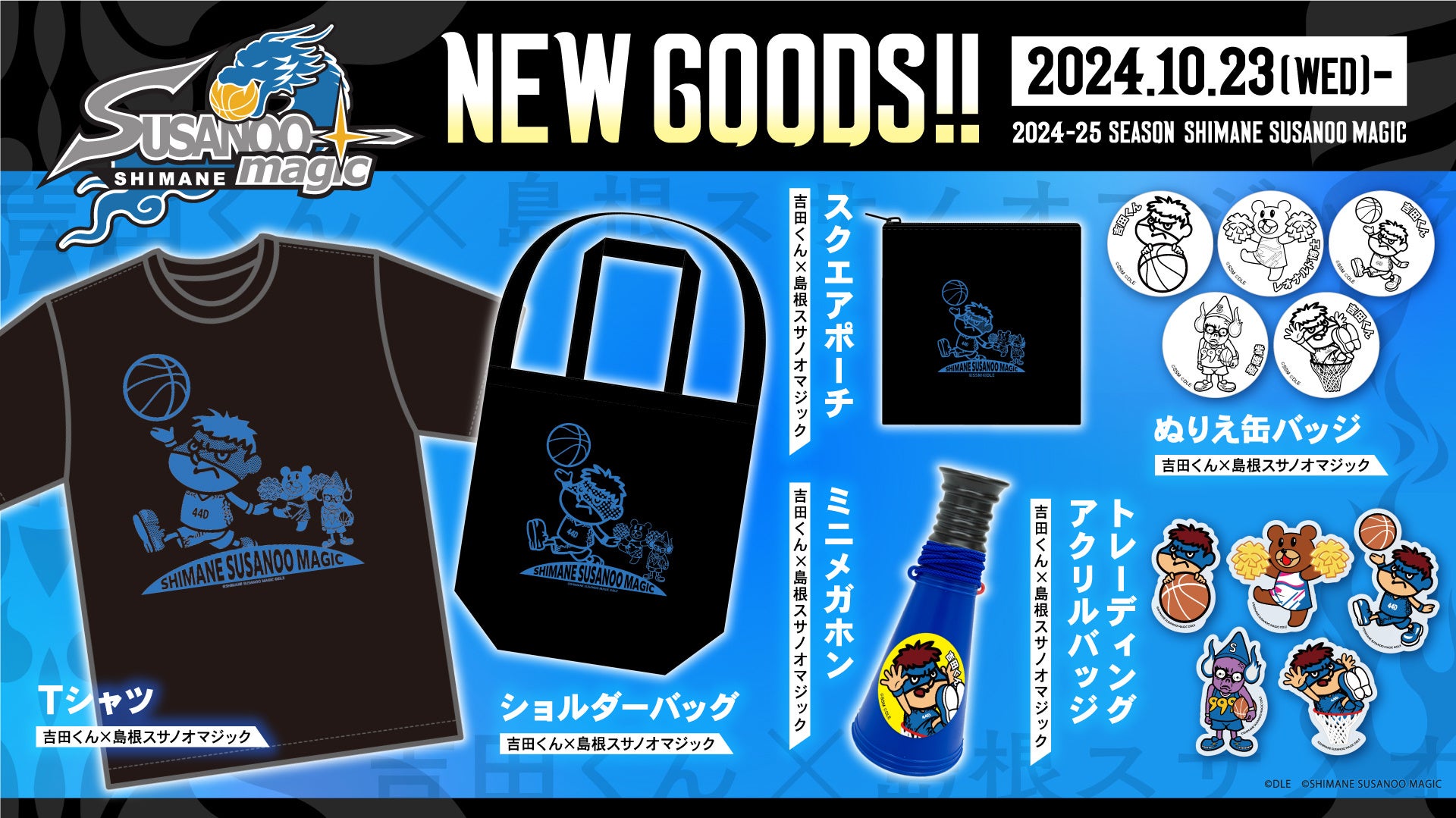 各種グッズは「島根スサノオマジック」のホームゲーム会場、または公式オンラインストアで販売いたします。詳細は公式HPよりご覧ください。