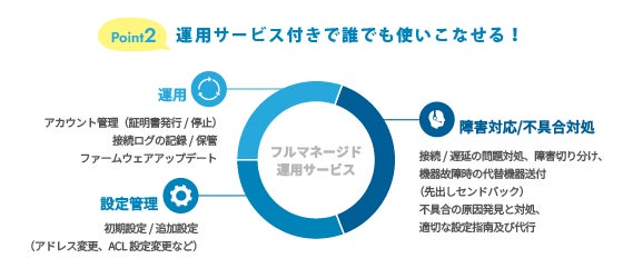 また以下の3つのポイントにより、前述した中堅・中小企業のSASE導入・運用に対する課題をクリアし、どなたでもゼロトラストに則したセキュリティを実現することができます。