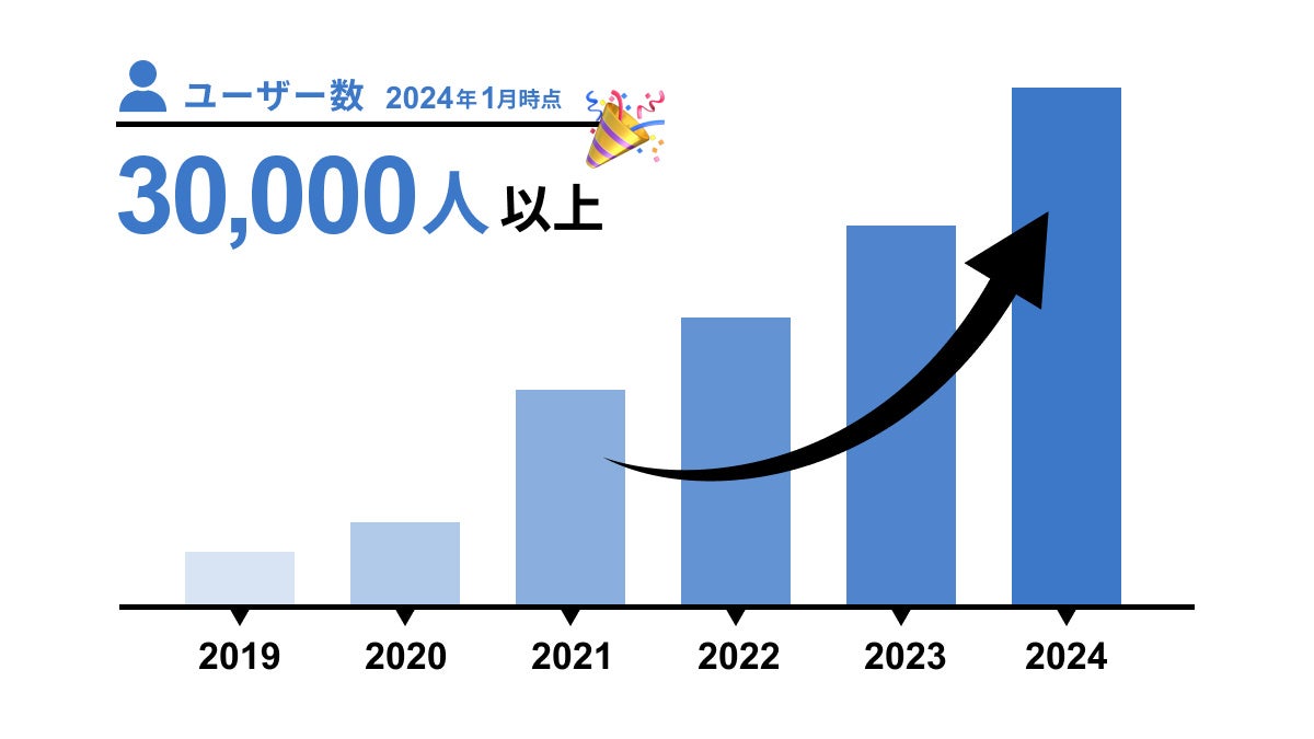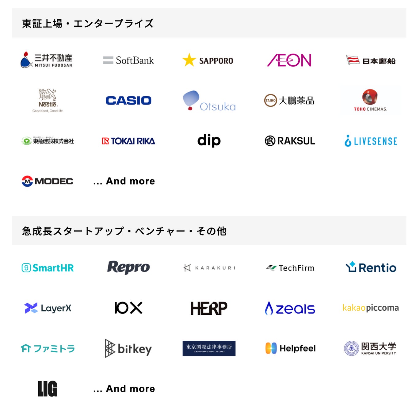 2019年の正式提供開始から5年で、東証上場企業からスタートアップ・ベンチャーまで多くの名だたる企業様にご導入いただきました。さらに、みなさまに選ばれ続けてサービス利用継続率は99%と非常に高い継続率を誇るサービスへと成長いたしました。(一部抜粋)
