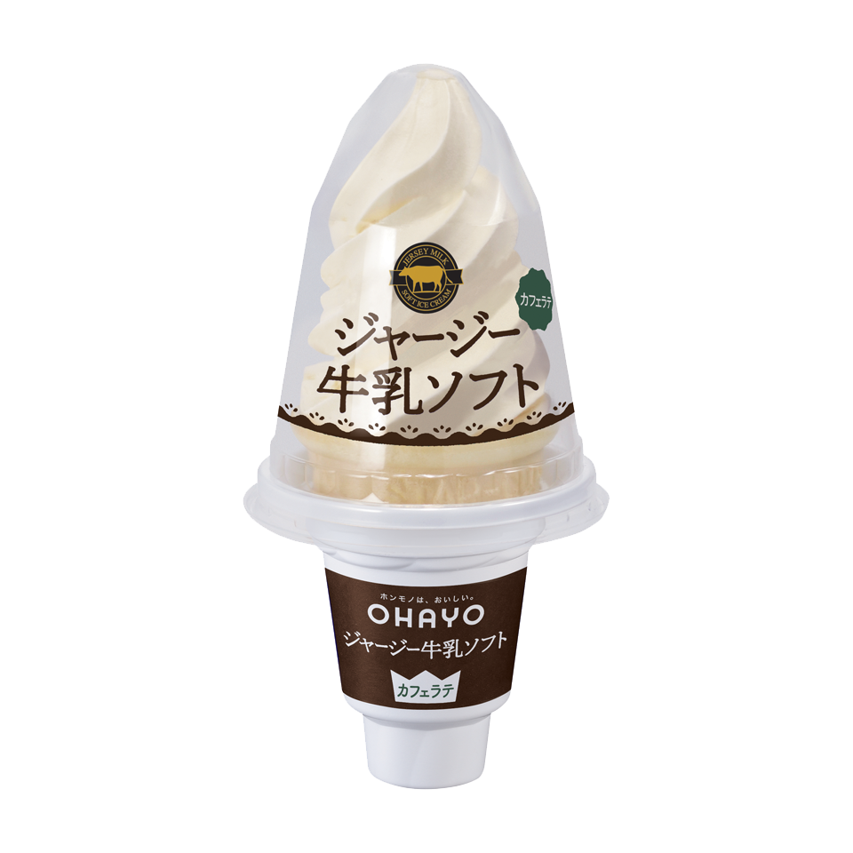 ジャージー牛は国内の乳牛の飼養頭数のうち、わずか0.8%と非常に希少な乳牛です。そのミルクは一般的な乳牛(ホルスタイン種)のミルクと比べて乳脂肪分が高く、濃厚でコクのある味わいをお楽しみいただけます。オハヨー乳業の「ジャージー牛乳ソフト」は、1999年の発売以来、素材をいかしたおいしさが愛され続けて、今年で25周年となるロングセラー商品です。ミルク感、カフェラテ感をよりお楽しみいただけるようリニューアル