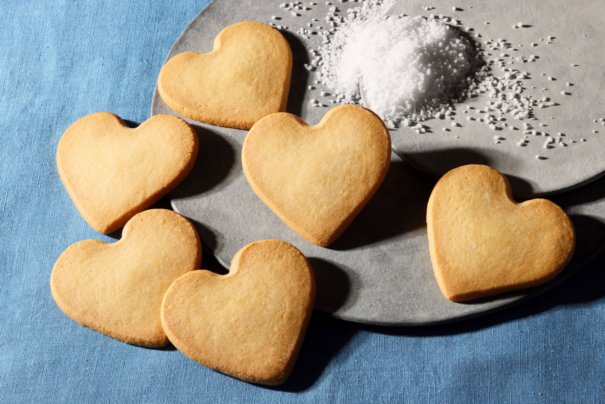 <しあわせサブレ>は、風味豊かな発酵バターをベースに、ピリッとした味わいの岩塩を隠し味に使ったサブレです。岩塩は海水由来の塩に含まれるにがり成分が少ないため、まろやかな味が特徴。更に、アメリカミシガン産の、4億年前ともいわれる海水から結晶化した岩塩を使用している為、現代の塩より不純物が少なくミネラルを豊富に含んでおります。今だけこの岩塩を約4倍に増量して季節限定で新発売します。