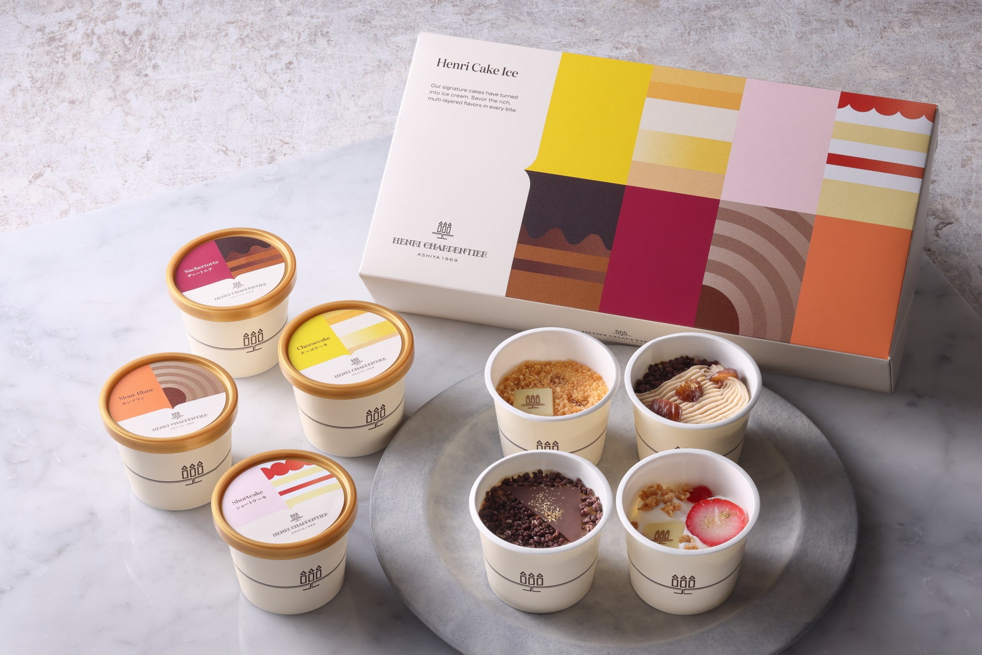 今年5月に新登場した、ケーキをそのまま凍らせたような新食感のアイス。最初はひんやりとしたアイスの食感、時間が経つとケーキのしっとりとした食感、とお召し上がりのタイミングによって食感が変わります。ケーキ層とジュレ層で構成されており、凍った状態ではアイスとジェラートのようななめらかな食感、時間が経つとケーキとジュレの爽やかな酸味の組み合わせといった、お召し上がりのタイミングによって食感が変わるデザートです。色々な楽しみ方ができるこの<アンリ・ケーキアイス>は、アンリ・シャルパンティエならではの工夫が詰まった一品です。ぜひあなただけのベストな食べ方を見つけてください。