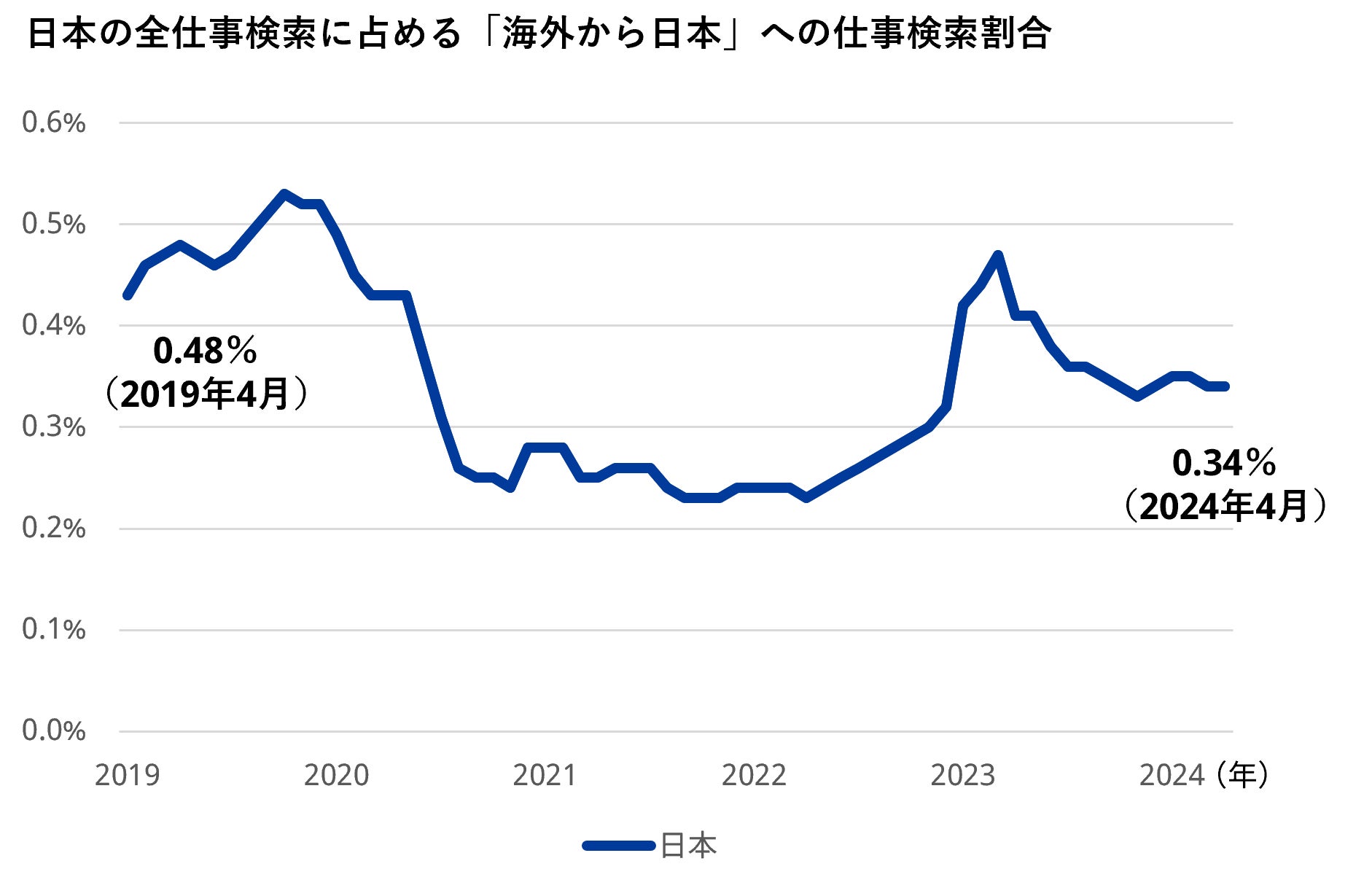 日本の全仕事検索に占める「海外から日本」への仕事検索割合