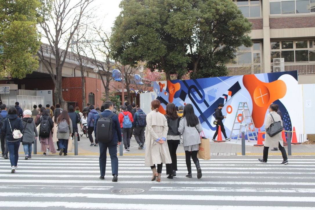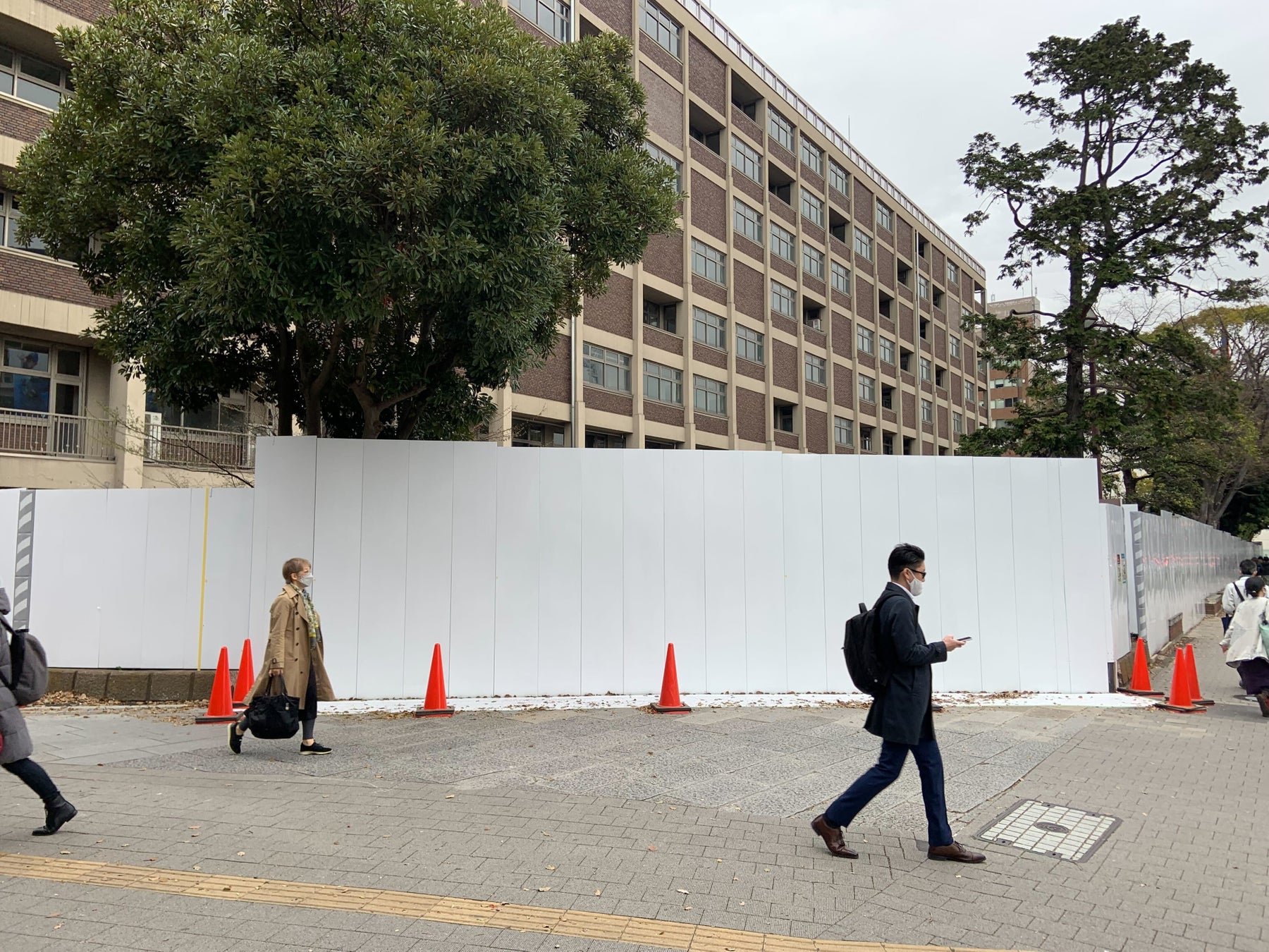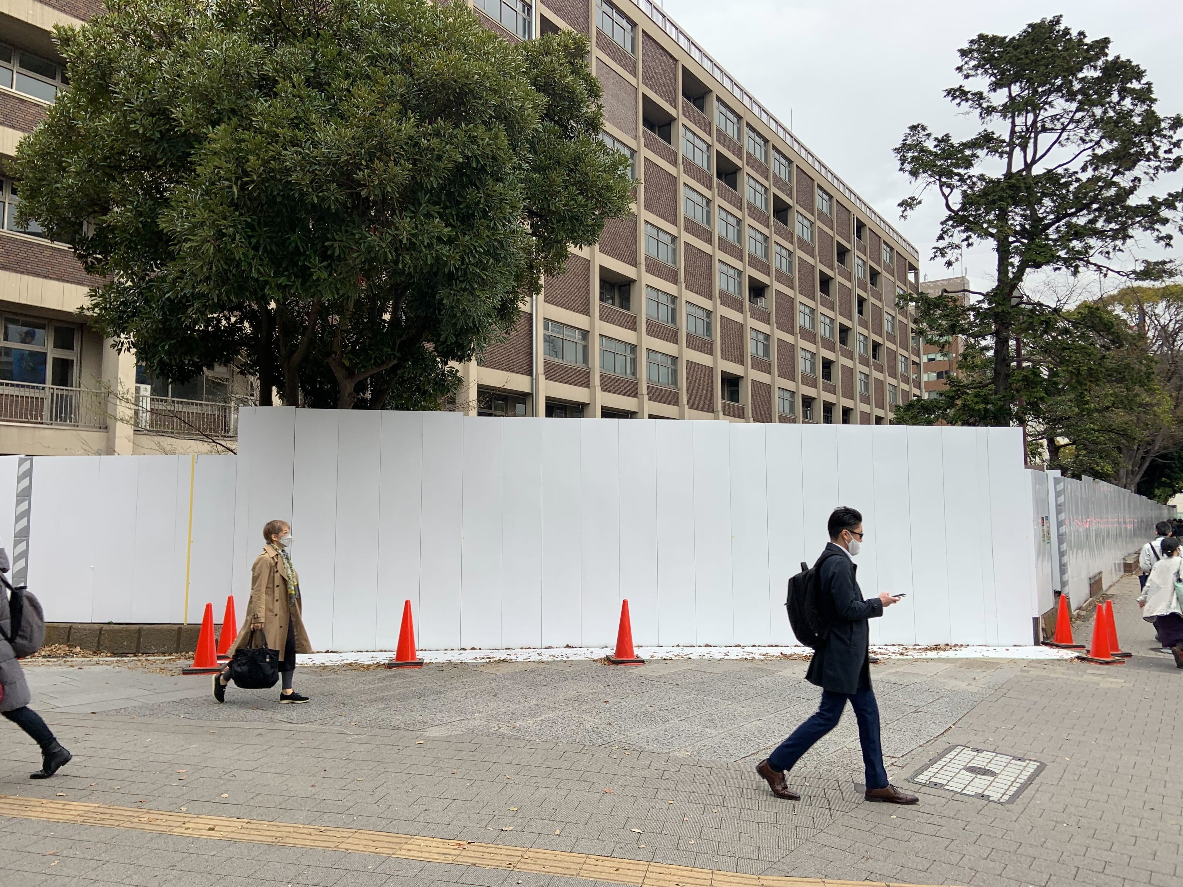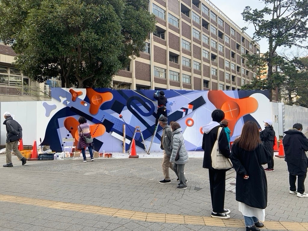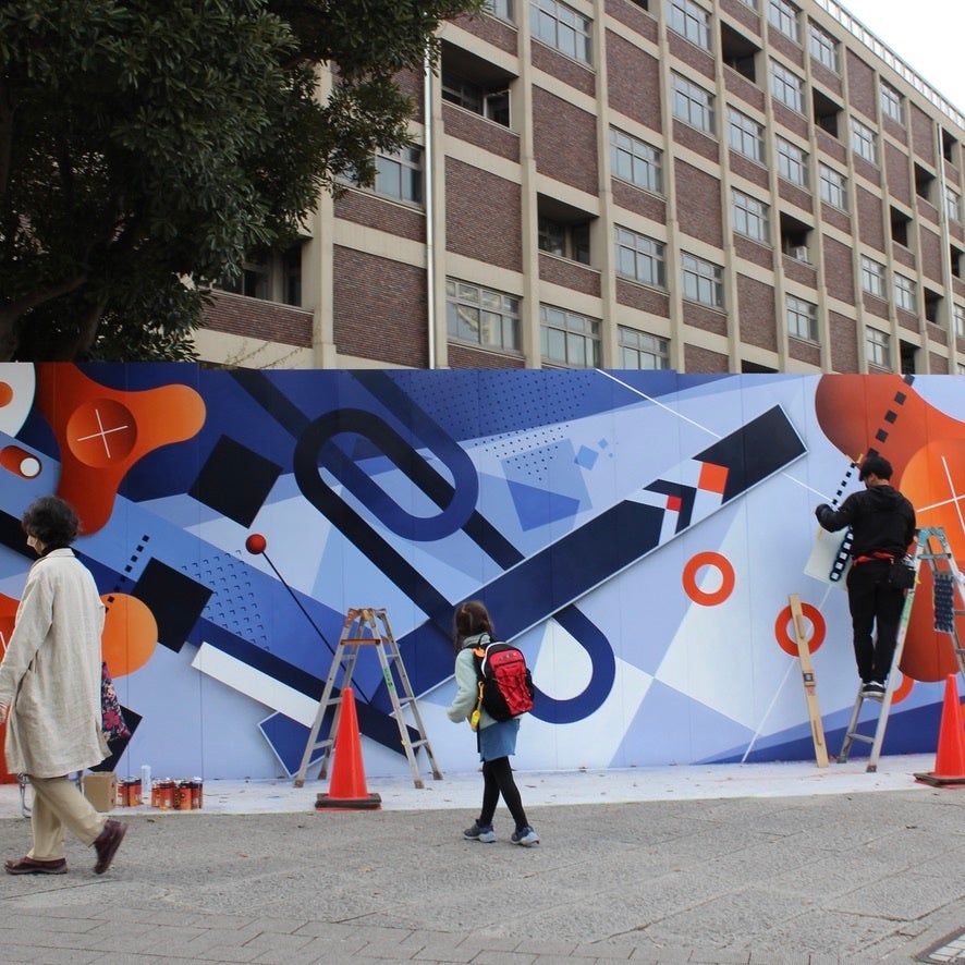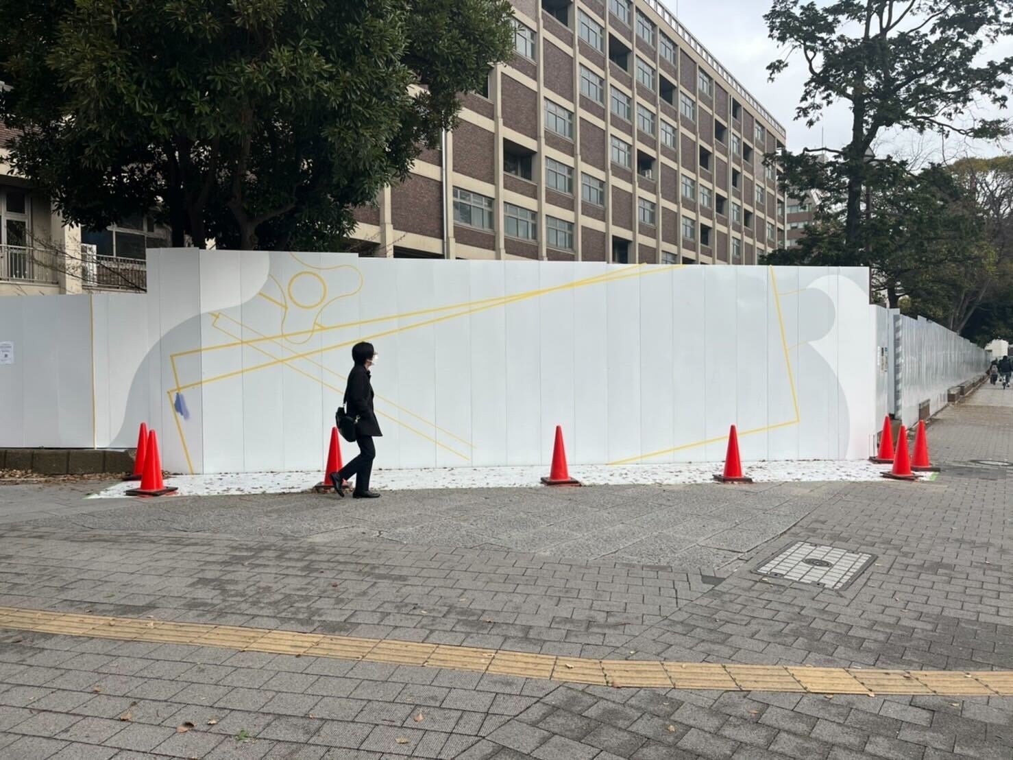 同地は横浜市旧市庁舎街区活用事業が進められており、外周の仮囲いをキャンバスとして、アーティストFATE氏のシグニチャーである幾何学的な模様が壁面を彩っています。