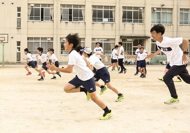 集合、まずは、お互い緊張の面持ちでの挨拶から始まります。続いて軽いランニングで体を温めます。