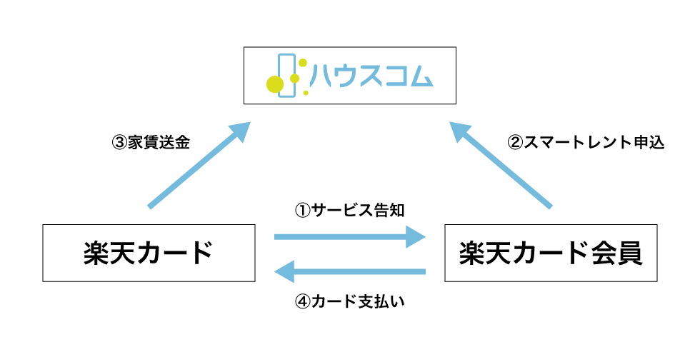 「スマートレント」はハウスコムが貸主になるという特徴を生かし、3月1日より楽天カード会員向けに「楽天カード」での家賃支払いサービスを開始します。