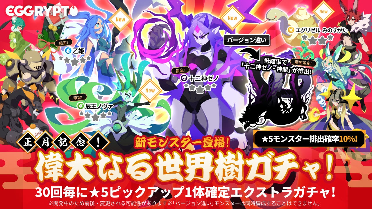 NFTゲーム「EGGRYPTO(エグリプト)」、年末年始キャンペーン開催!期間中ログインで星5モンスター確定の無料ガチャ10連をプレゼント!