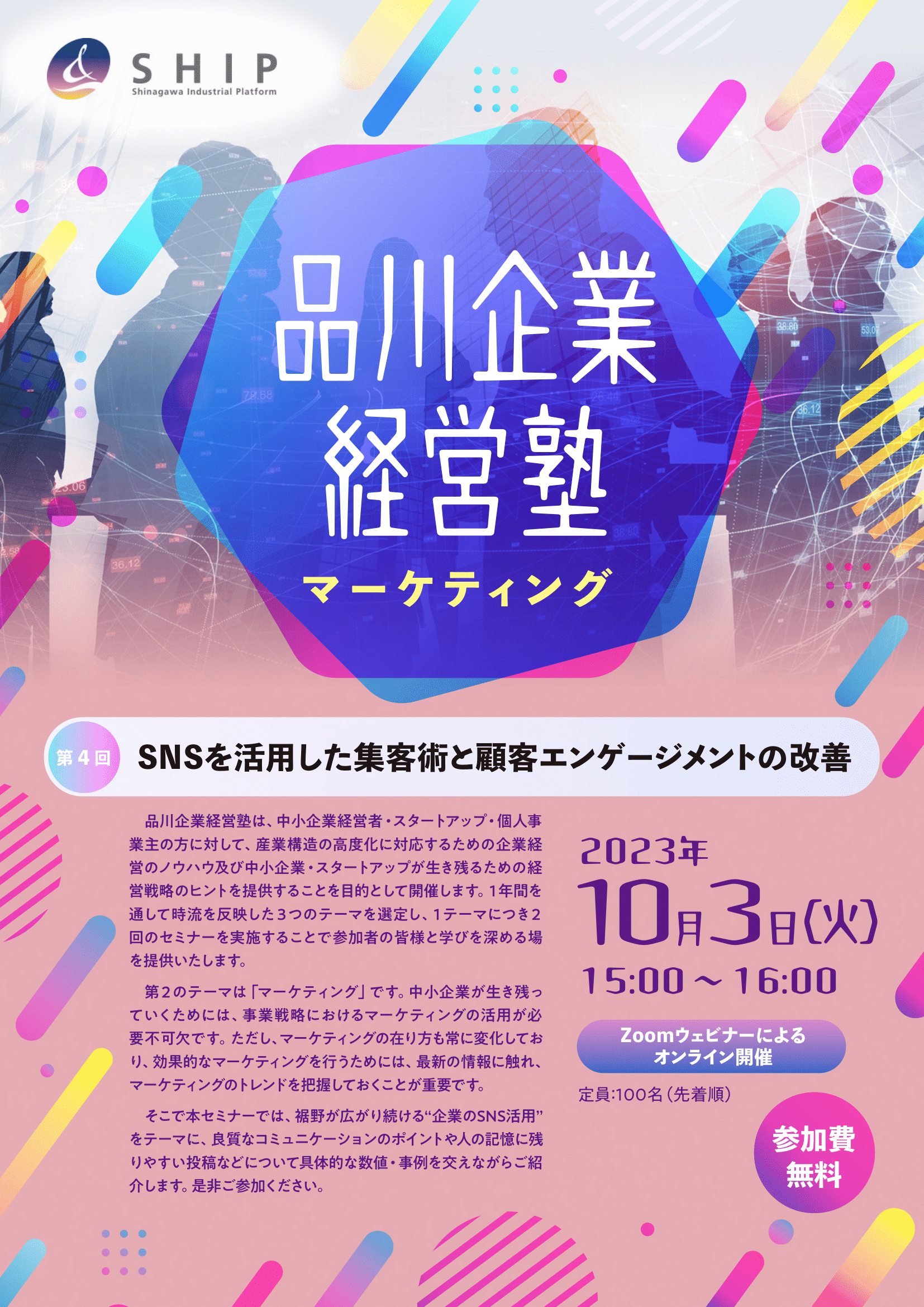 【ウェビナー開催】「マーケティング~SNSを活用した集客術と顧客エンゲージメントの改善~」のご案内(2023/10/3)