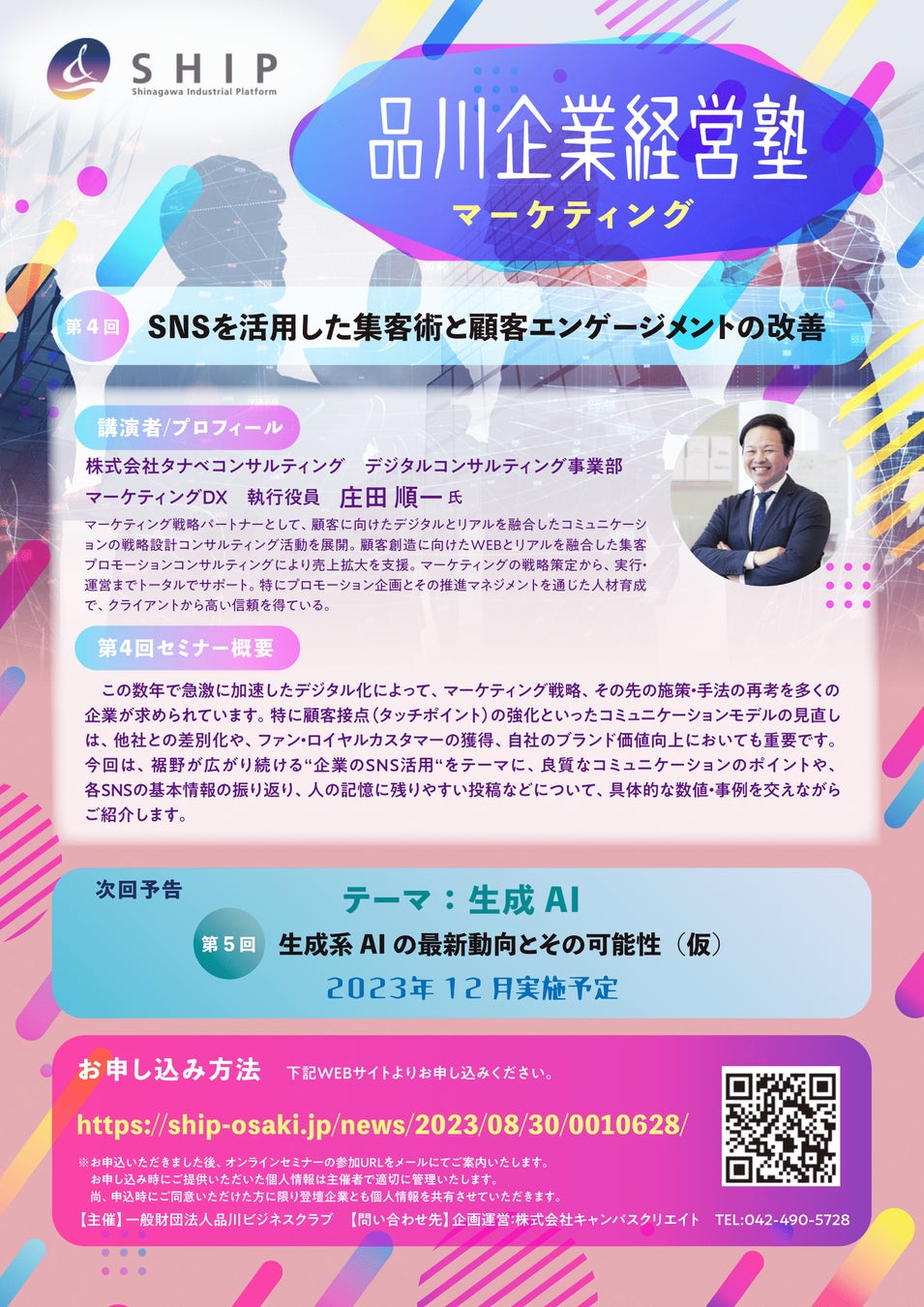 品川産業交流支援施設SHIPでは、令和5年10月3日(火)、第4回 品川企業経営塾として