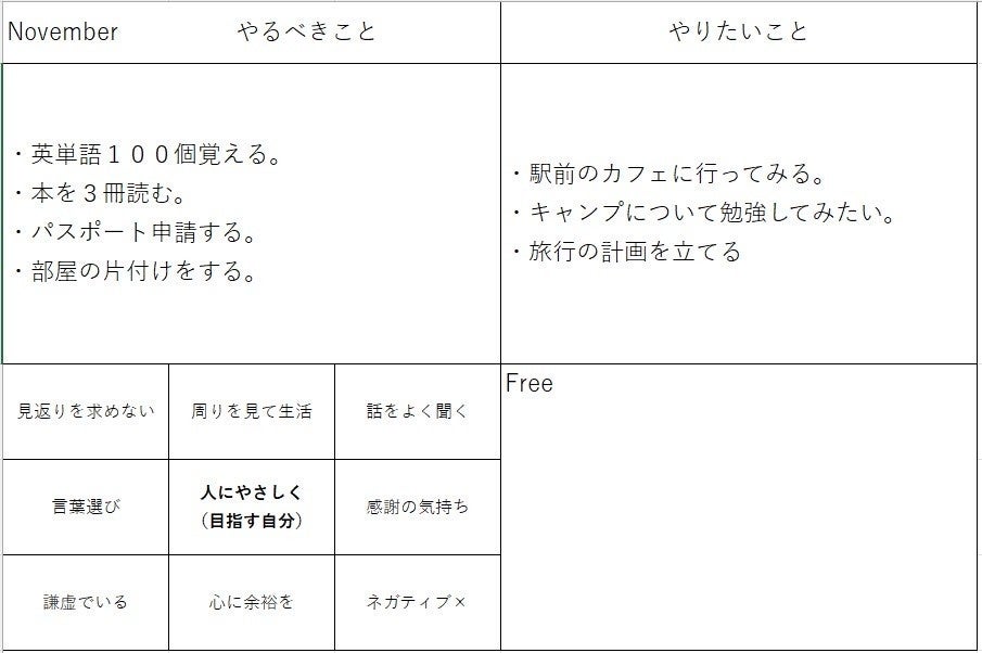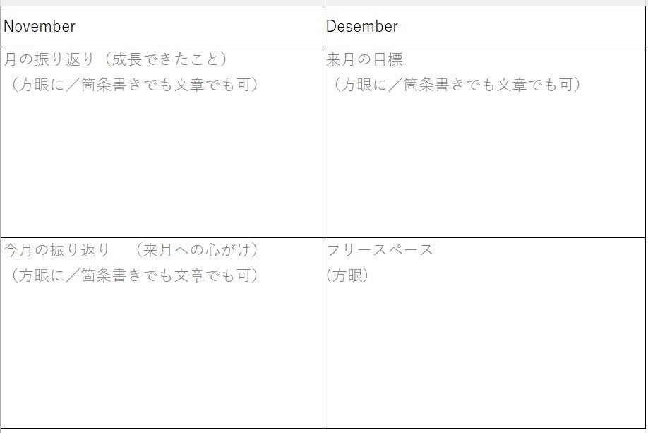 4.リザルトページ:月の振り返りを記入するページ