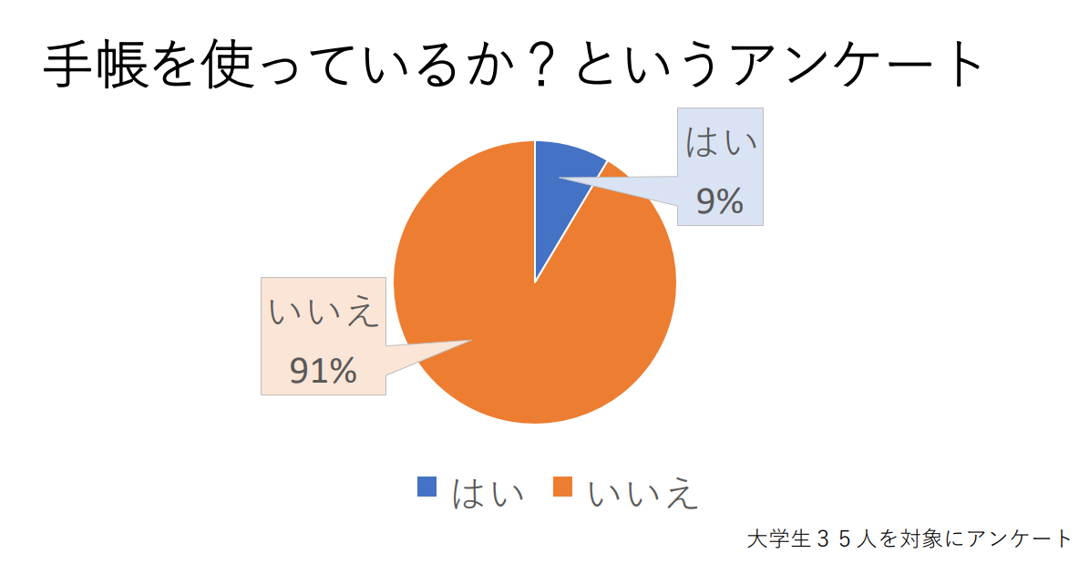 ダイバーシティチームの自主調査によると大学生が手帳を使う割合が少ない。