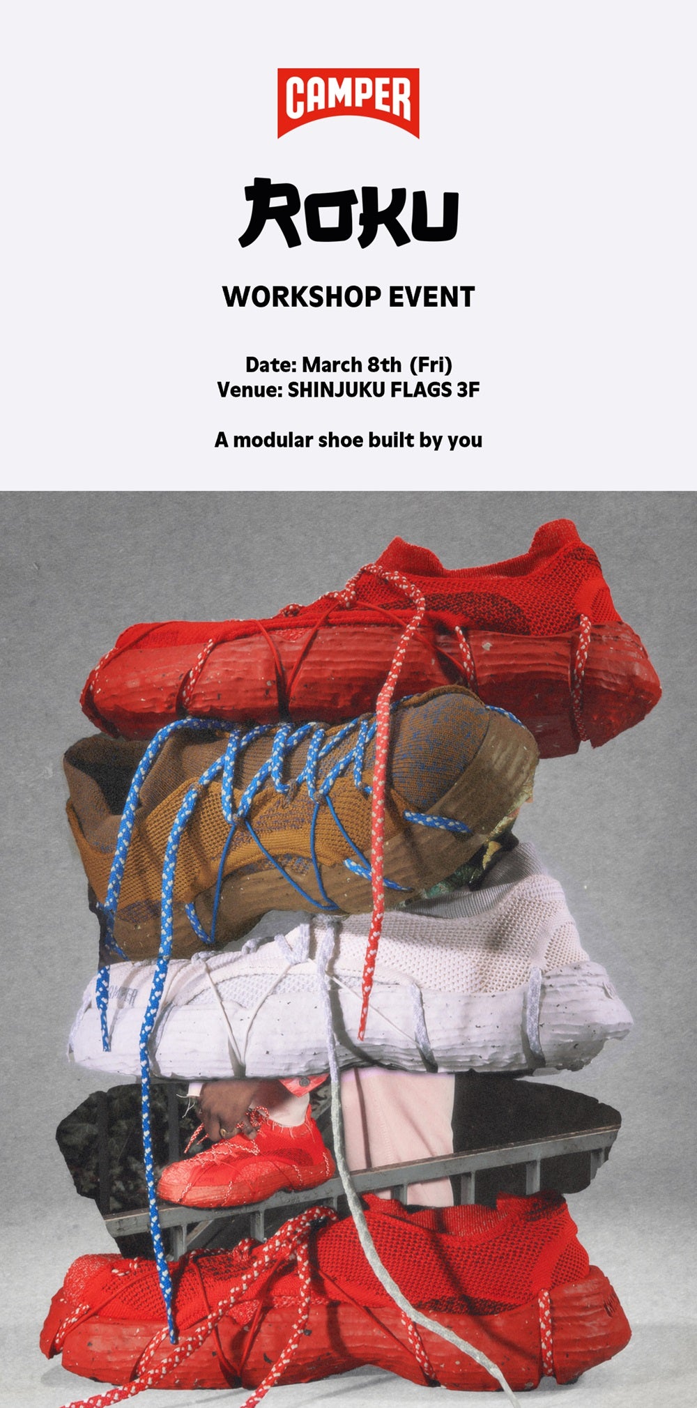 スペイン・マヨルカ島発のシューズブランド「CAMPER(カンペール)」は、2024年3月8日(金)に、デザイン・パフォーマンス・サステナビリティを叶えたカンペール史上で最も革新的なコンセプトの新ユニセックスライン「ROKU(ロク)」を発売します。ローンチを記念してカンペール新宿フラッグスにて、「ROKU」のワークショップイベントを開催します。