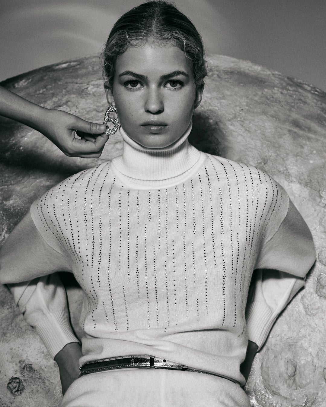 また、同時に「スペシャルコレクション」もローンチします。このコレクションは、最上級のカシミヤときらめくビーズ刺繍、黒、青、ホワイトの革新的なグラデーションを組み合わせ、星降る夜の幽玄な美しさにインスパイアされた、時代を超えたエレガンスと特別な輝きを作り出します。このコレクションのアイテムは、スタイルだけでなく汎用性も備えており、コーディネートし洗練されたルックに仕上げたり、単品に着用して個性的な装いをカスタマイズすることもできます。いずれのアイテムも、ウィンターシーズンを通して、タイムレスでエレガンスな輝きをご提案します。