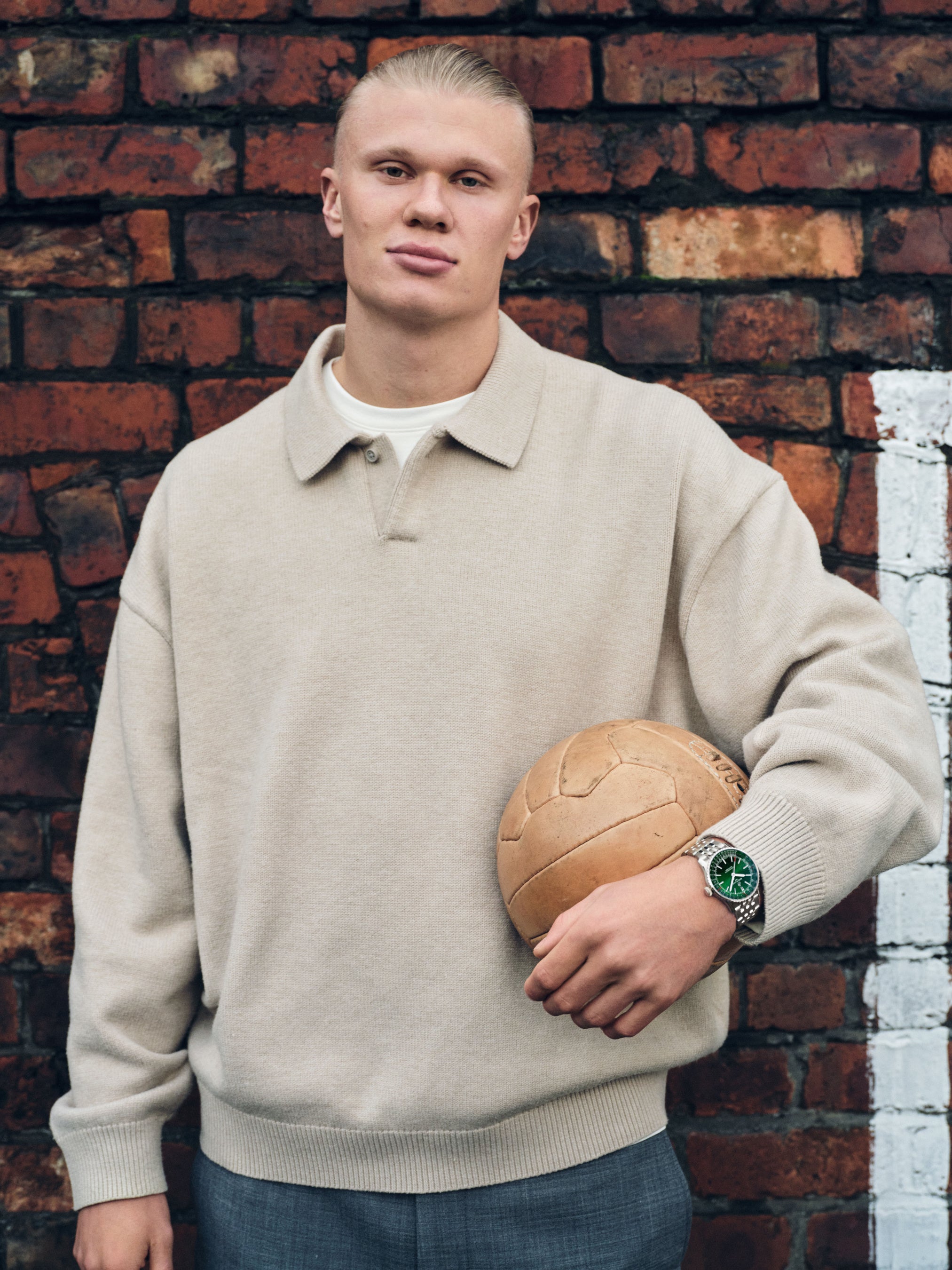 人気サッカー選手のアーリング・ハーランドです。ハーランドは2022年よりブライトリングのアンバサダーを務めており、ブランドのアニバーサリーイヤーにナビタイマーの広告塔として活躍することにワクワクしているとコメントしています。「ブライトリングのアイコンを代表できることをとても誇りに思います。今年は、ブライトリングがどれだけ多くの「初めて」を達成してきたかを多くの方が知り、誰もが驚くと思います。さまざまな面でゲームチェンジャーであることを。」