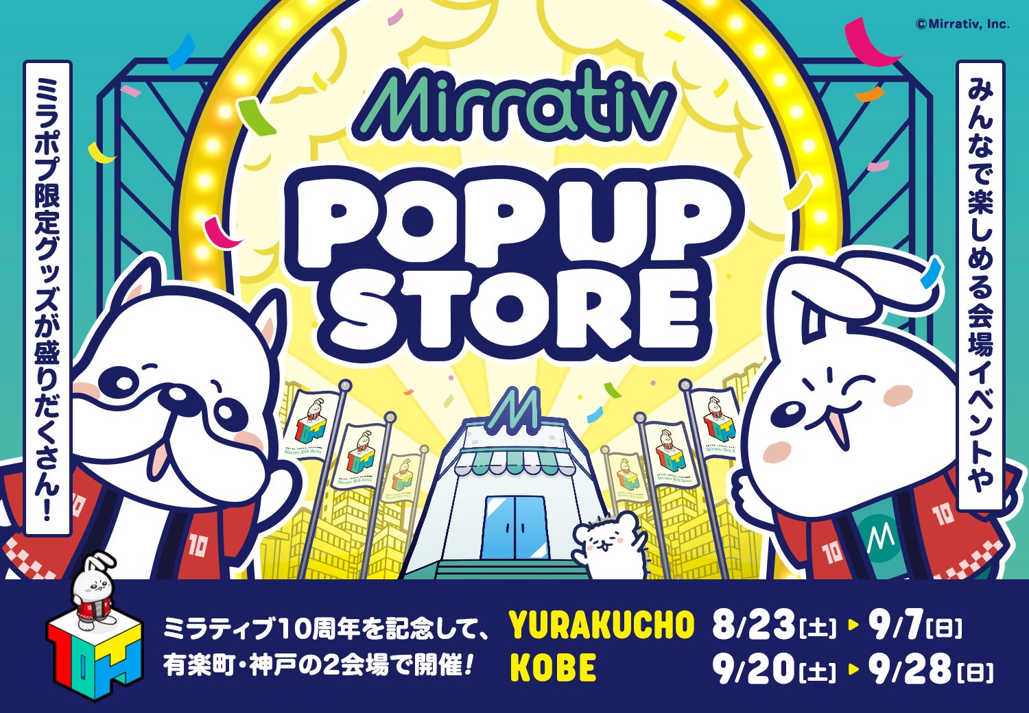 スマホゲーム配信者数で日本一※のゲーム配信プラットフォーム「Mirrativ(ミラティブ)」を運営する株式会社ミラティブ(本社:東京都目黒区 代表取締役:赤川隼一 )は、サービス開始10周年を記念し、ポップアップストアを有楽町マルイおよび神戸マルイの2会場で開催することをお知らせいたします。