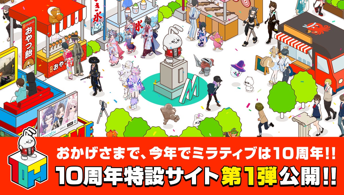 「あのころも、これからも、みんなの居場所。」をテーマに、ミラティブでは10周年を記念したさまざまな企画を展開中です。