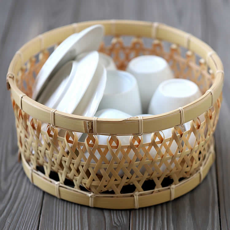 清々しい白竹で編み込んだ昔ながらの食器籠です。台所にひとつあると何かと便利、丸い足付きで、水切れ、通気性にも優れています。シンプルながらもどこか懐かしく、ホッとやすらぐ存在感からは本物の迫力が伝わります。