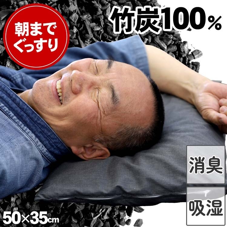ふんわりと優しい寝心地と竹炭の消臭力が特徴の高さのあるマクラです。枕カバーにも、枕本体にも消臭効果の期待される低温竹炭樹脂綿を使用。快適な寝心地はもちろんのこと、ニオイでお悩みの方にもオススメです。