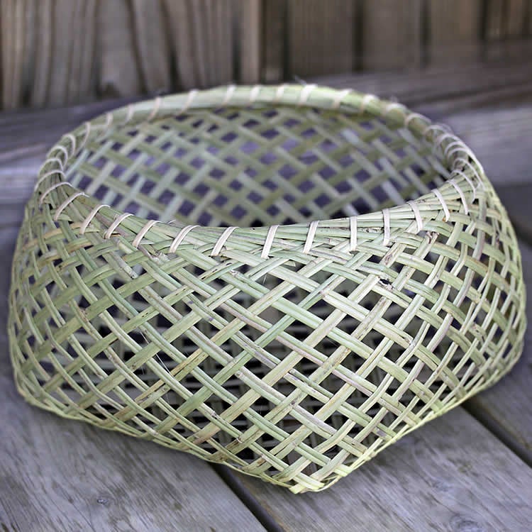 じゃがいもや玉ねぎなどの根菜類を入れる野菜籠としてピッタリな竹籠です。 縦と横の竹ヒゴの編み目が交差する四つ目編みは通気性も抜群。昔からの馴染みのある編み方と形は、シンプルだからこその風合い、飽きのこないデザインです。