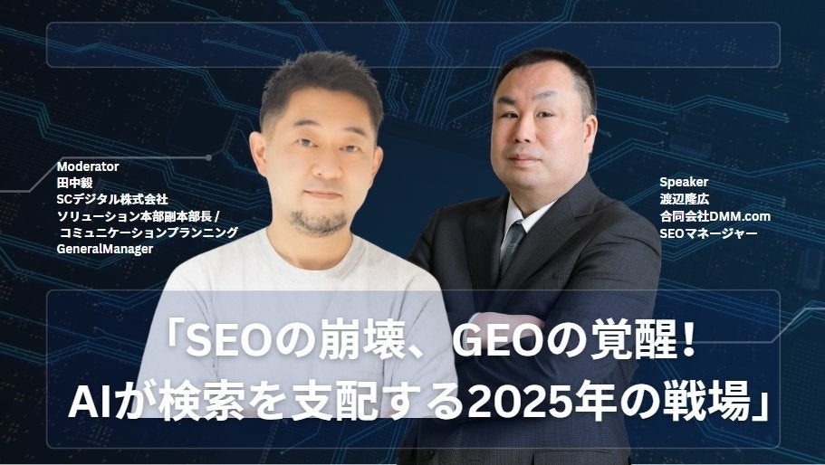 SEO界のレジェンド渡辺隆広さんをお迎えして、AI時代に検索行動がどう様変わりするか?情報発信する側はどうあるべきか?など、モデレータとしてお話を伺います。