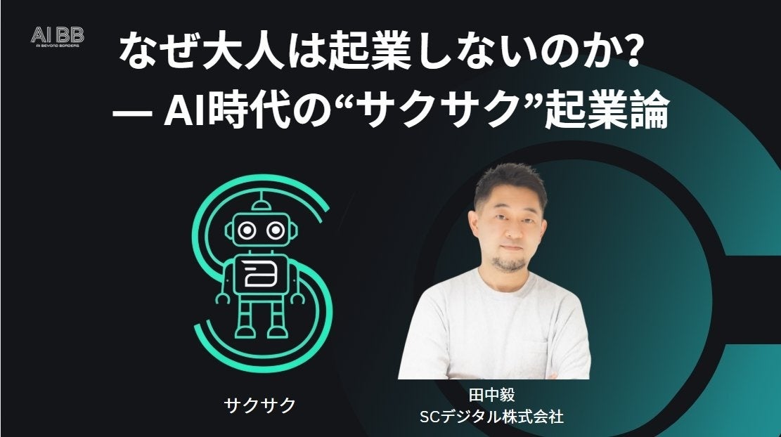 SCデジタル株式会社(代表取締役 社長執行役員CEO:中橋 大樹、以下「SCデジタル」)は、2025年6月4日(水)〜6日(金)に開催される、最新のAI技術をビジネスに活用するための最前線を知ることができるグローバルイベント「AI-BB Tokyo 2025」(主催:Pivot Tokyo 株式会社)において、当社社員 田中毅が登壇することをお知らせいたします。