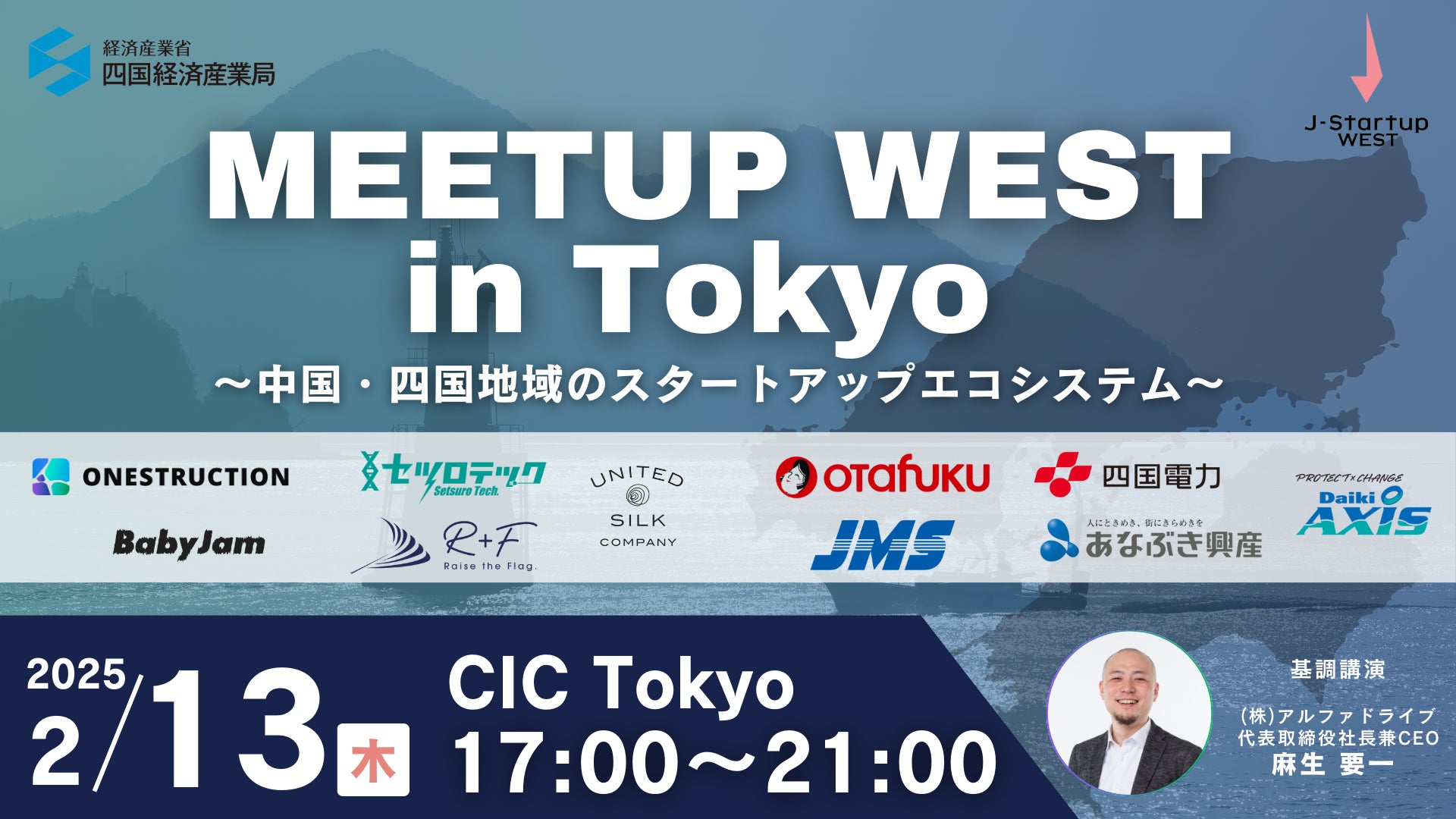 この度、都市部の事業会社や起業家、投資家、支援機関等との連携促進を目的に、J-Startup WEST 選定企業や中国・四国地域の事業会社が取り組む新規事業の活動を発信するイベント「MEETUP WEST in Tokyo」を開催します。