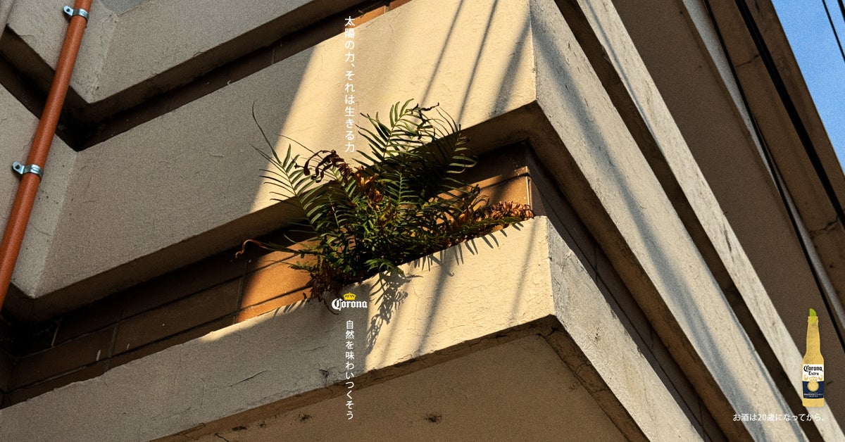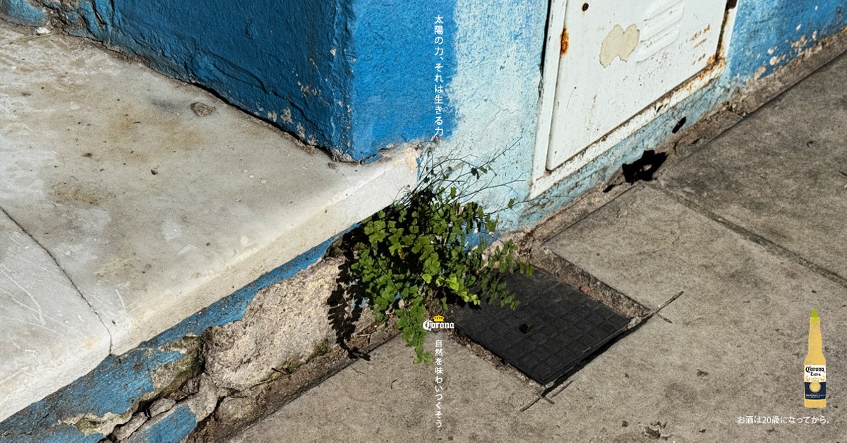 コンクリートに溢れ、自然が限られている都会であっても、ふと目を向けると太陽の力を浴びながら力強く生きる自然があります。道端で力強く生える雑草を題材にした「プラント・ビルボード」を通じて、自然の素晴らしさとそれらを育む太陽のエネルギー、そして私たち自身も太陽の下で過ごすことの大切さを、多くの人に感じていただくきっかけになればと願っています。この春、コロナビールを片手に、外に出かけてみませんか。