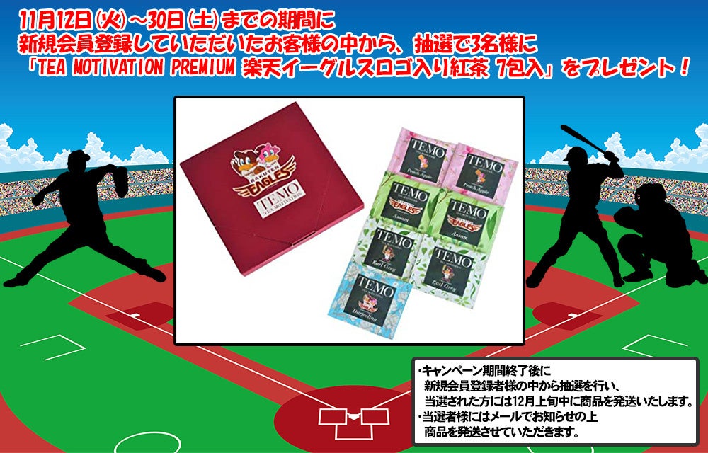 「だんぼーる本舗」は、2024年11月末までに新規会員登録されたお客様の中から、抽選で3名様に「TEA MOTIVATION 楽天イーグルスロゴ入り紅茶 7包入」が当たるキャンペーンを実施!
