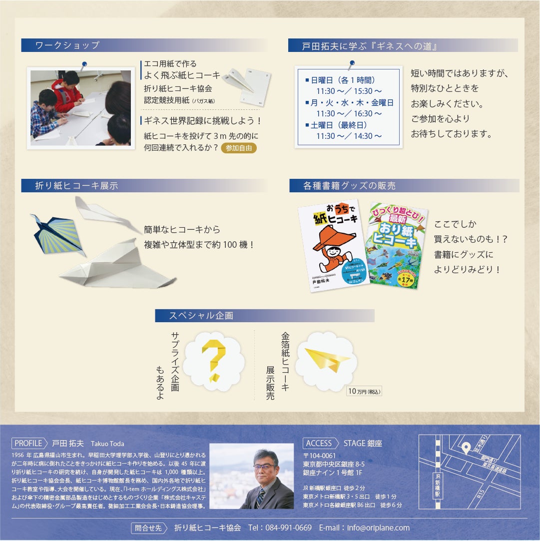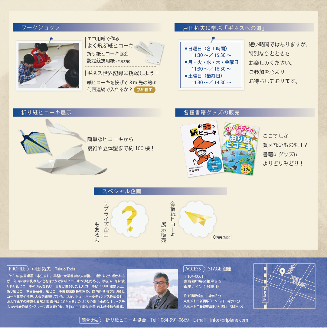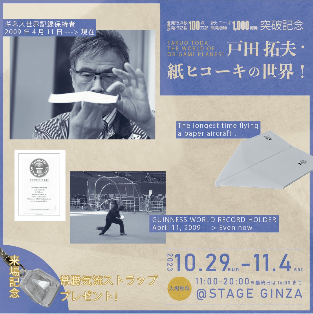 折り紙ヒコーキ作家 戸田拓夫【初の個展】STAGE銀座 10/29~11/4 期間限定で開催