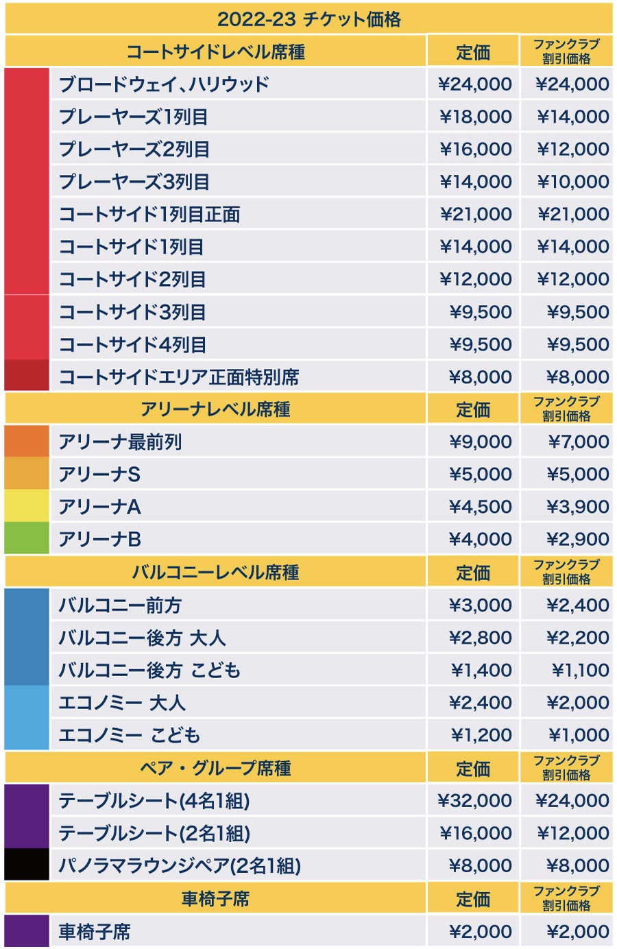 2022-23シーズン観戦チケット価格について