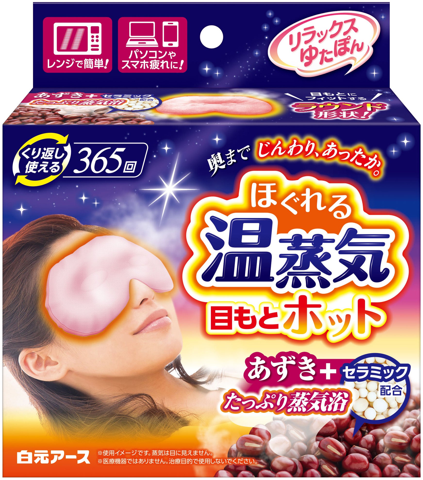 ●あずきとセラミックによるたっぷり蒸気が目もと全体を包み込みます。