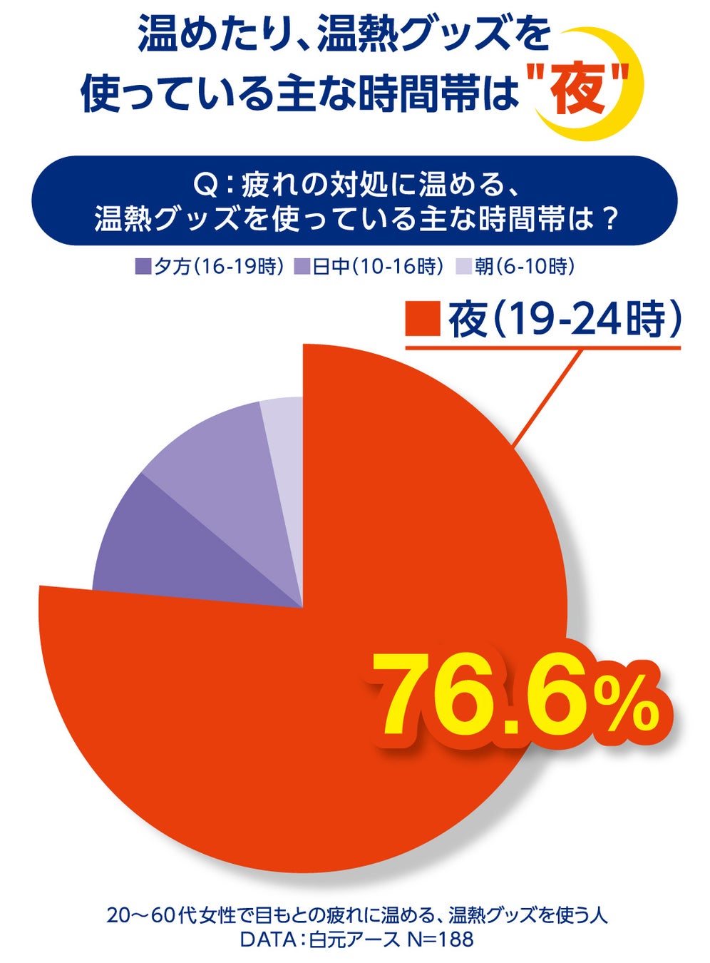 今回、当社が独自に調査したところ、疲れに対して、温める、温熱グッズを使用するといった方法は、主に“夜”に行なわれていることが分かりました(下図参照)。